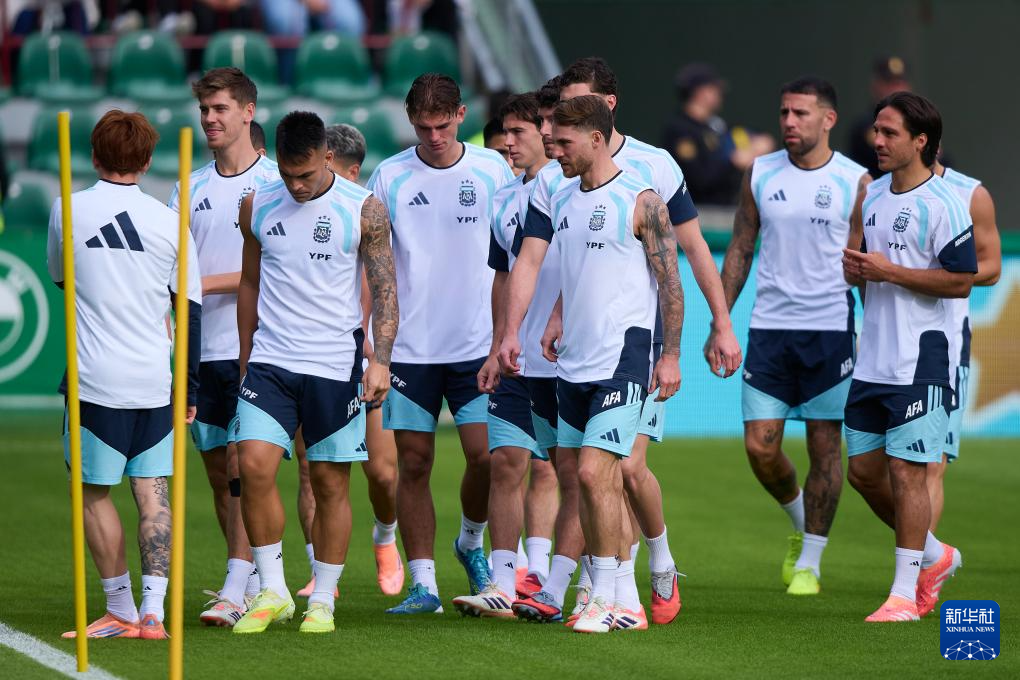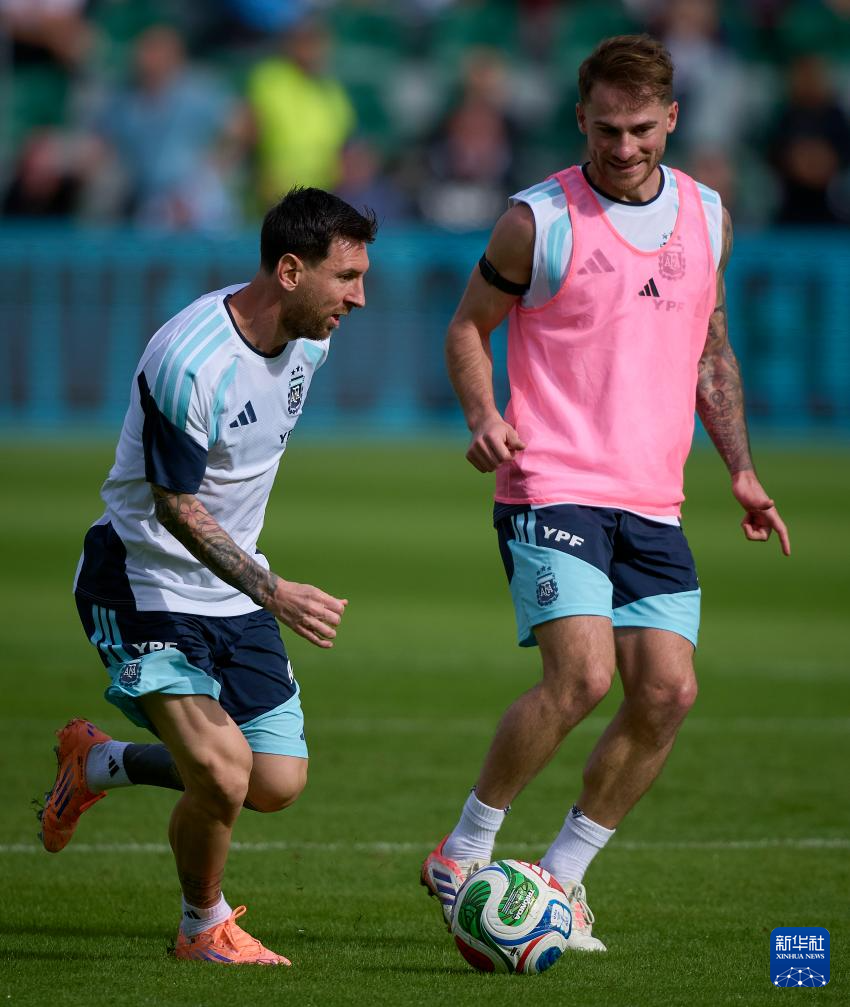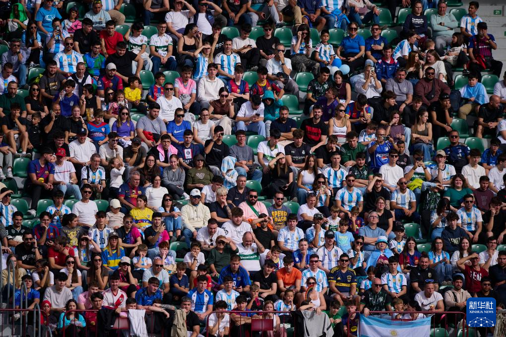 当日,阿根廷男足国家队在西班牙埃尔切的马丁内斯·巴莱罗球场进行公开训练。