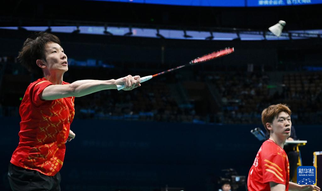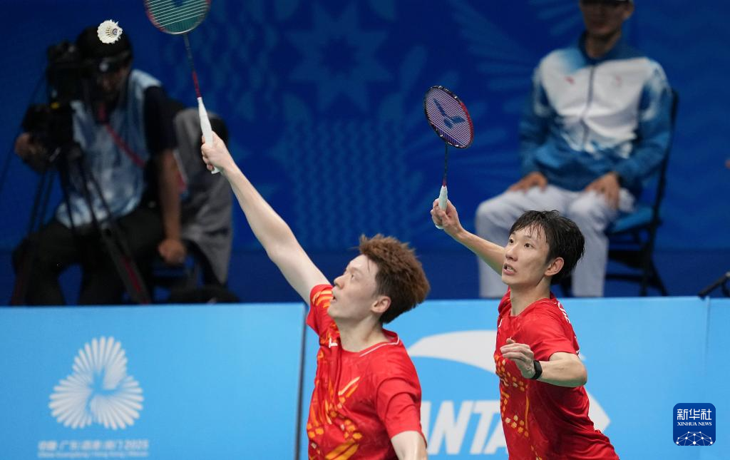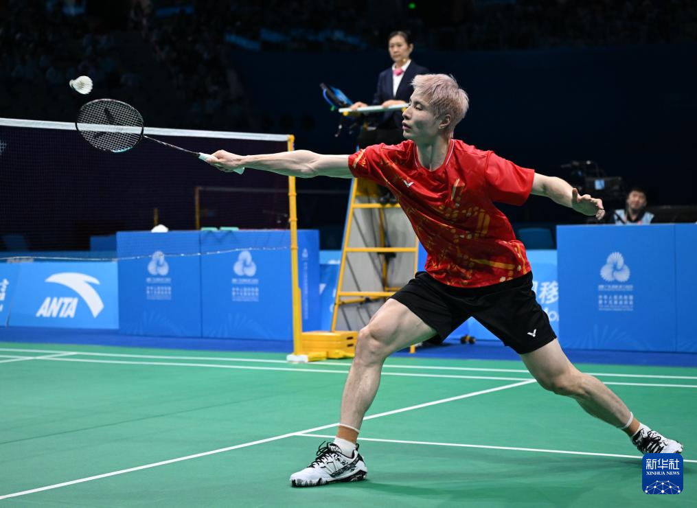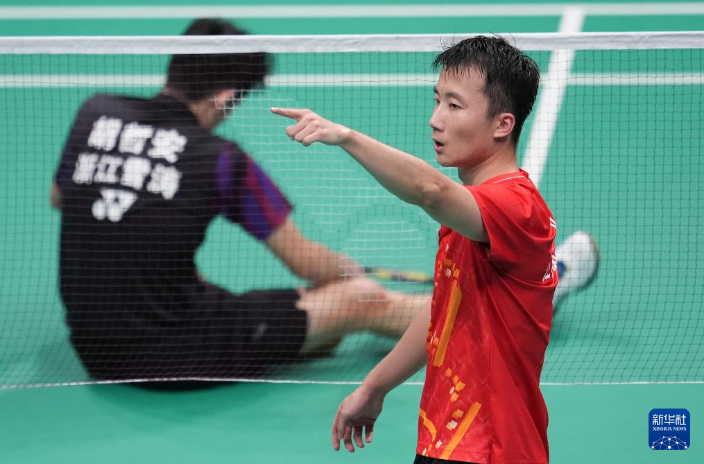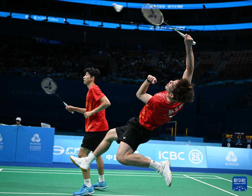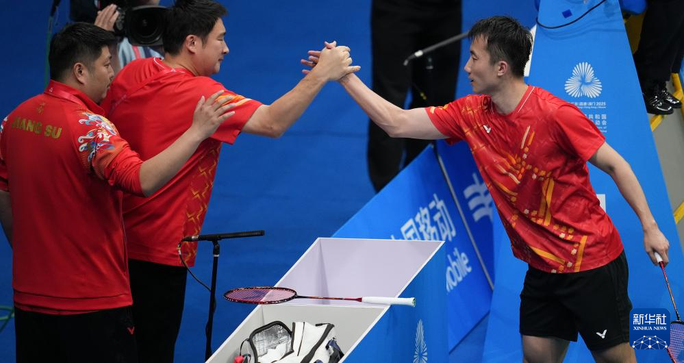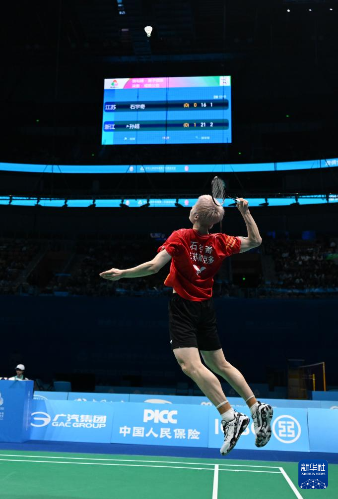 当日,在深圳举行的第十五届全国运动会羽毛球男子团体决赛中,江苏队对阵浙江队。