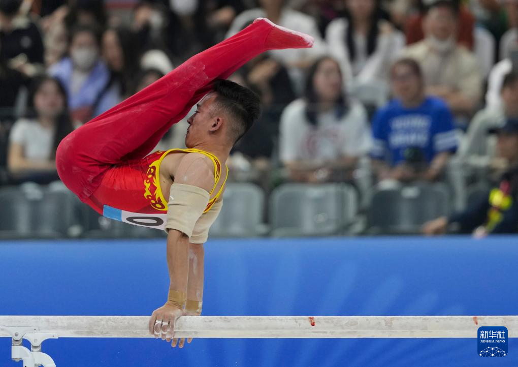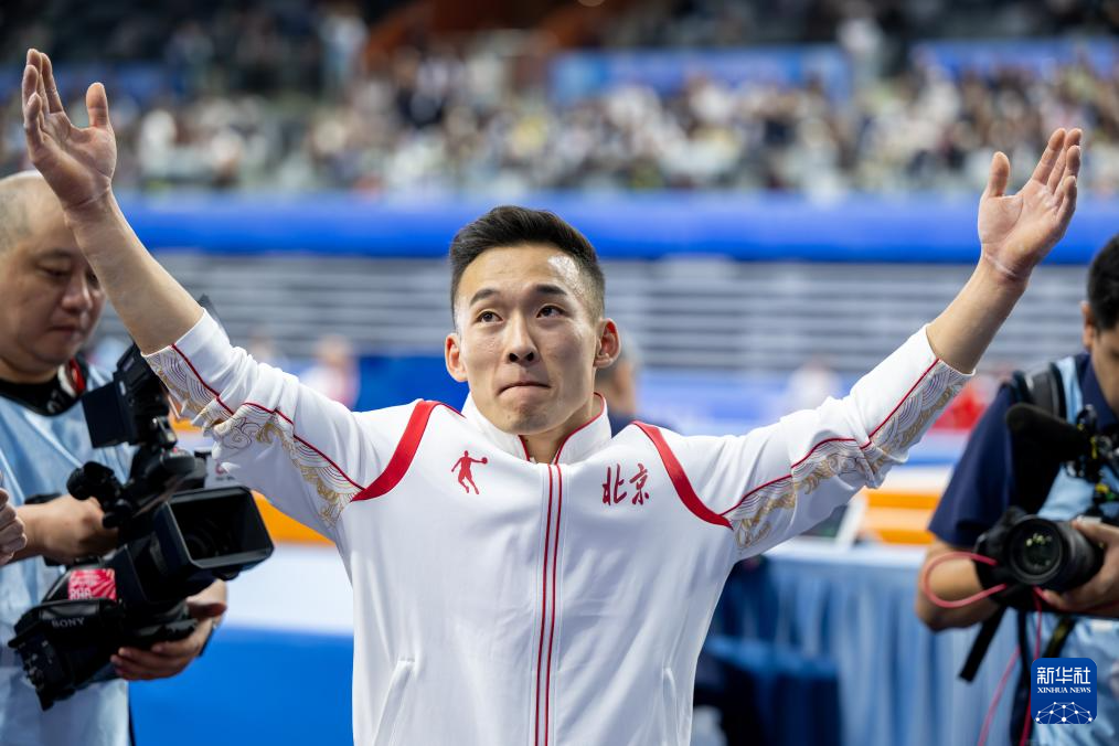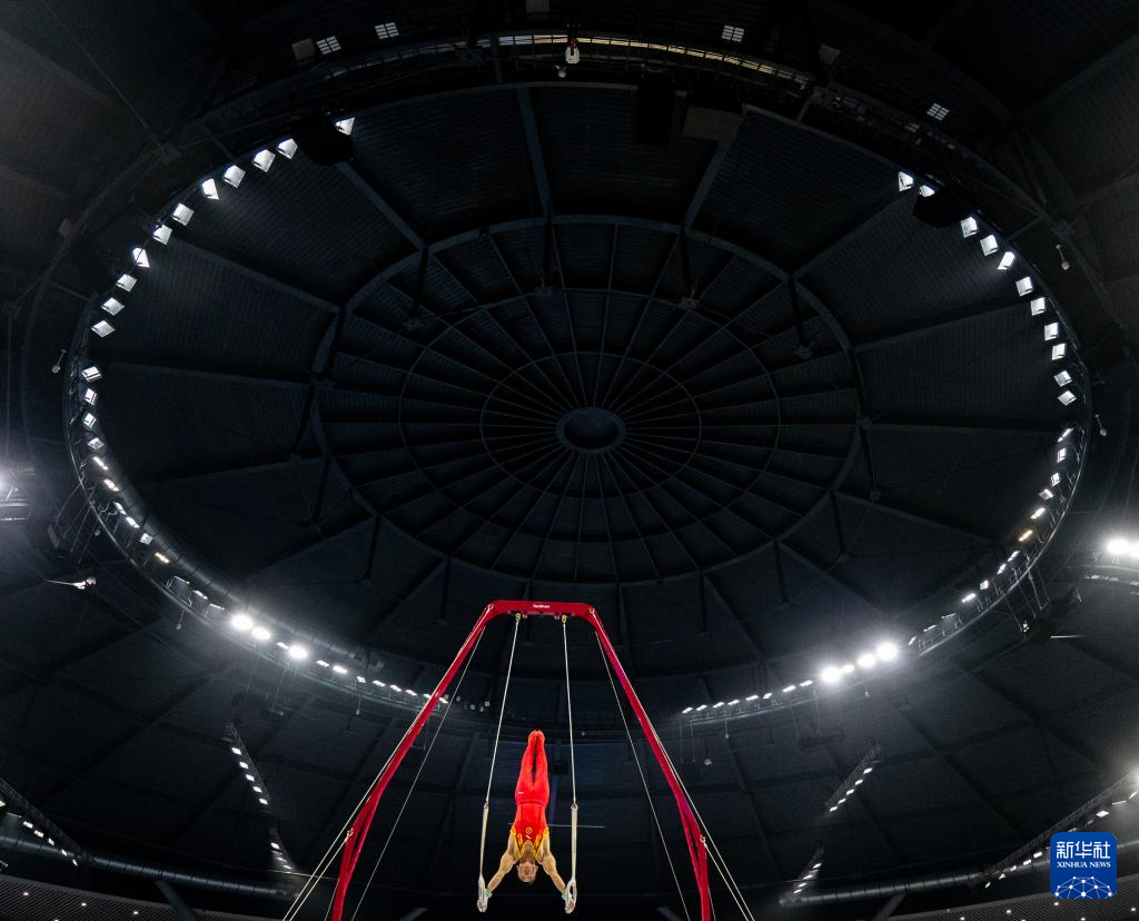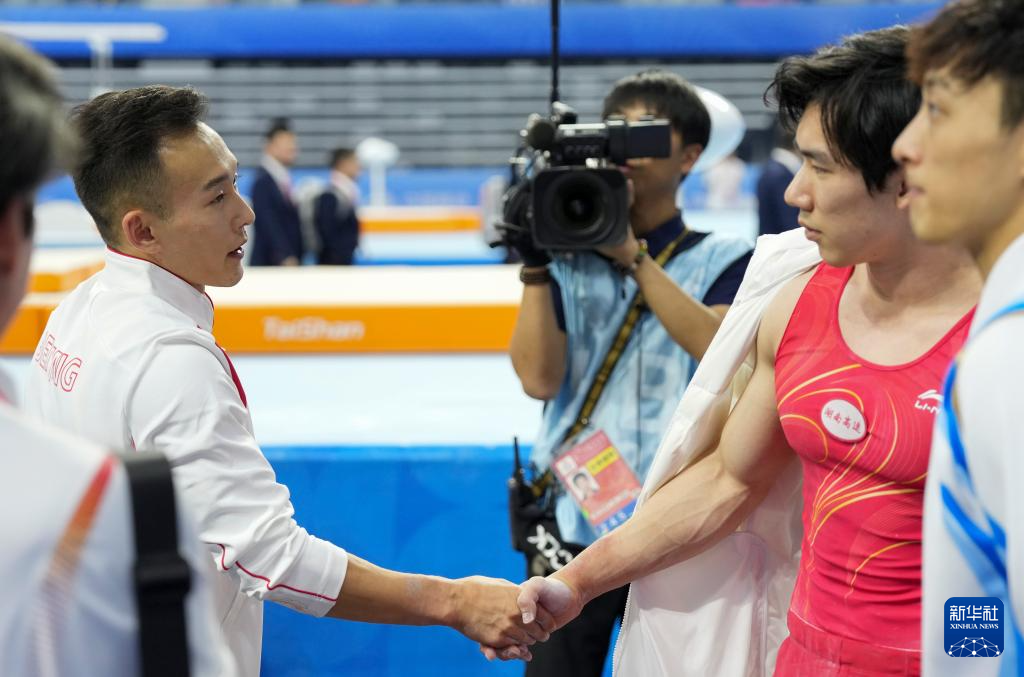当日,第十五届全国运动会体操项目男子个人全能决赛在广东肇庆举行。