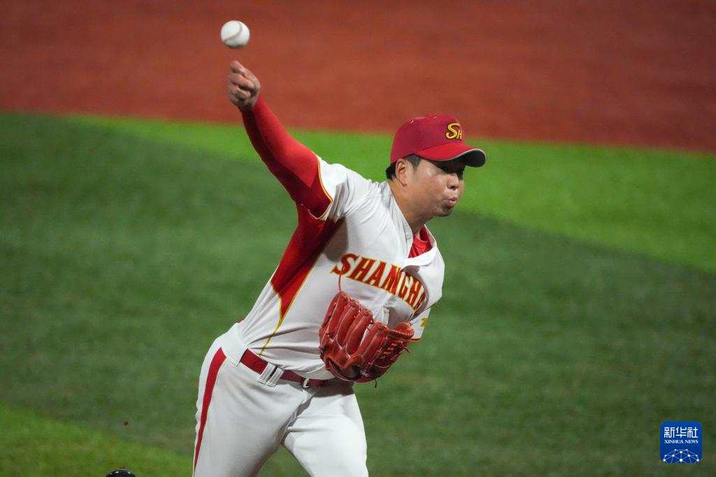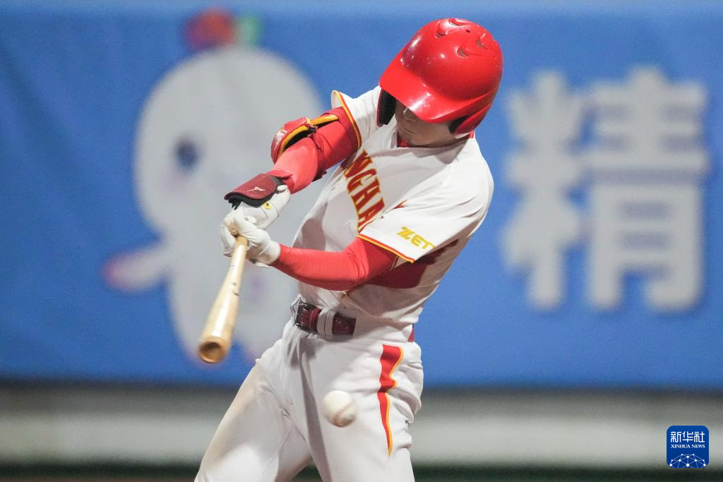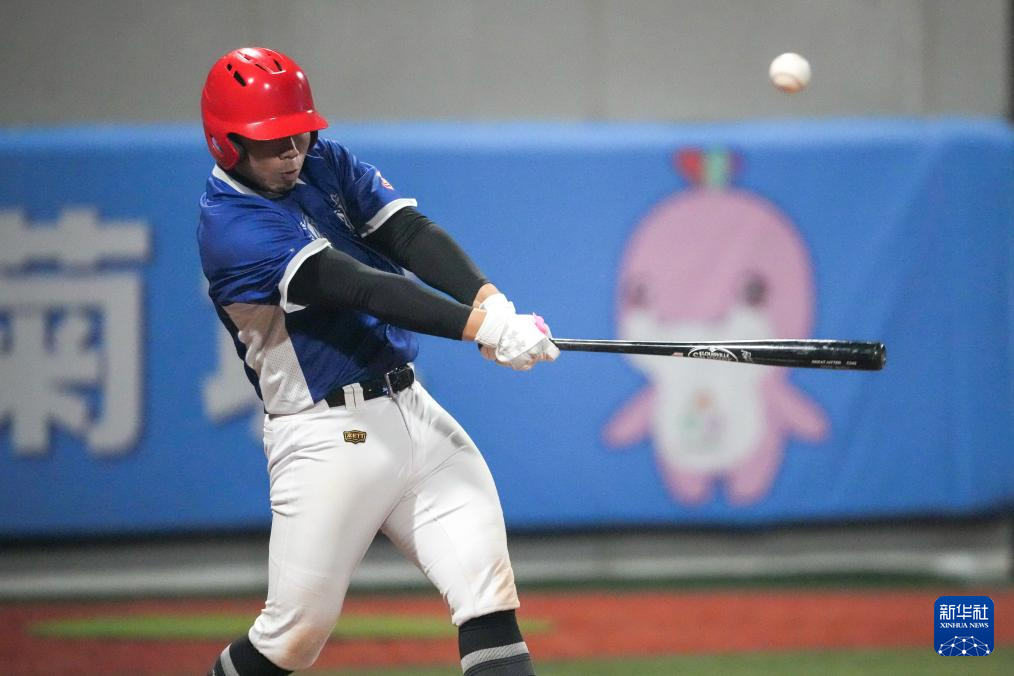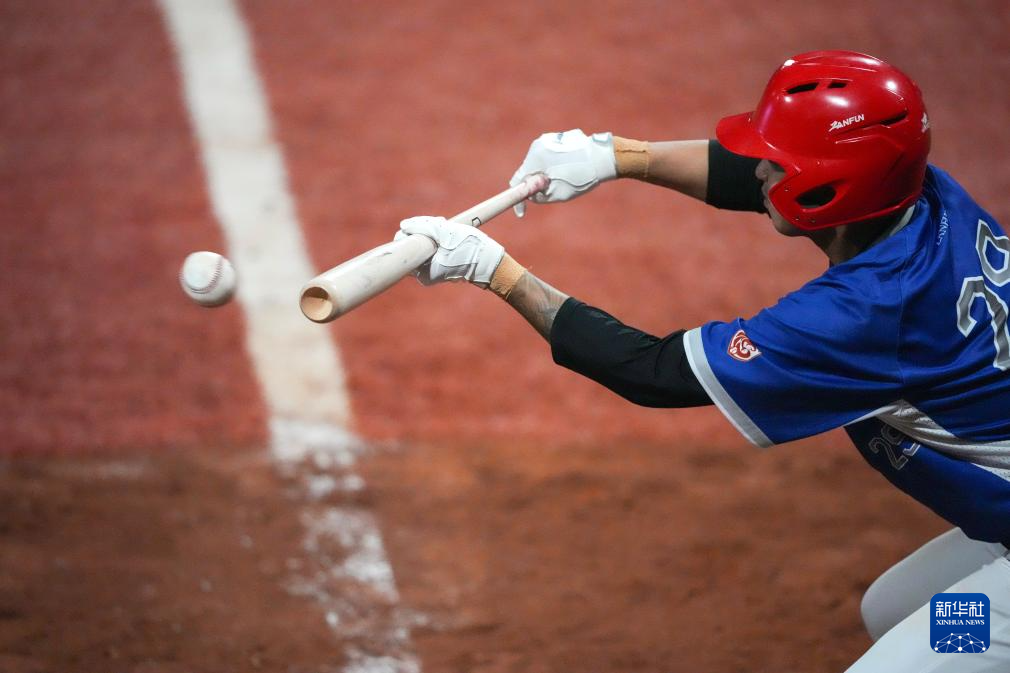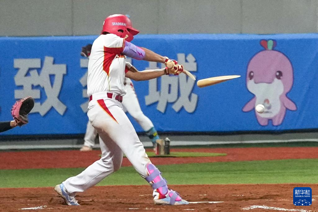11月14日,上海队球员丁宇泽在比赛中击断球棒。
