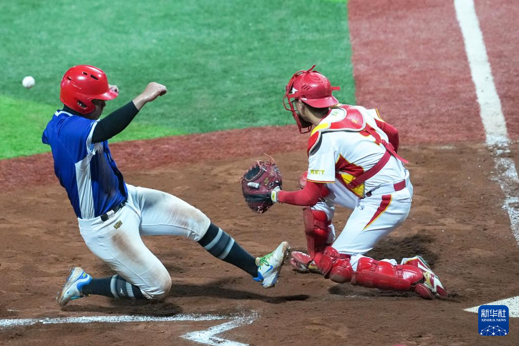 11月14日,福建队球员邱胤祯(左)在比赛中滑垒。