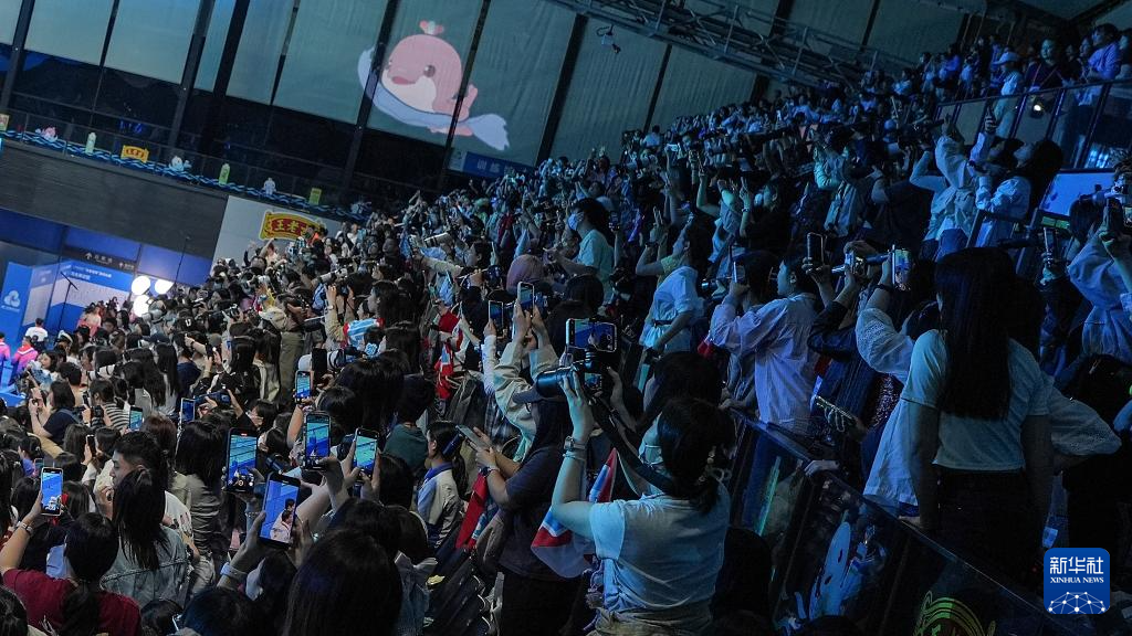 11月14日,观众在颁奖仪式后拍摄冠军浙江队选手汪顺。
