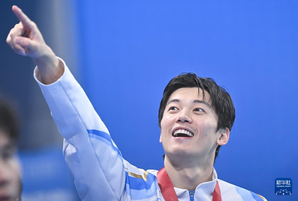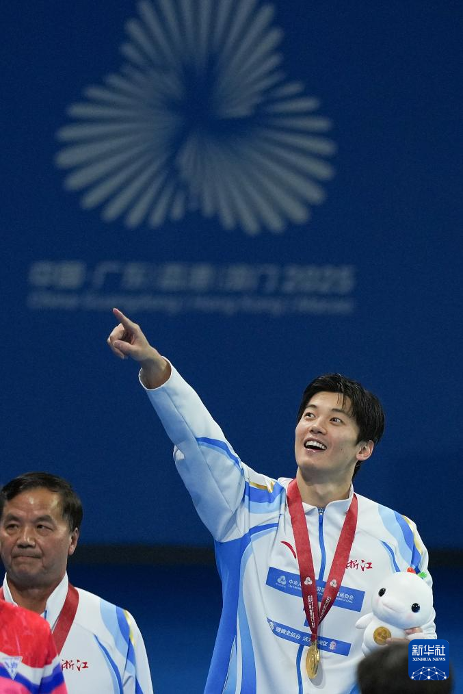 11月14日,冠军浙江队选手汪顺在颁奖仪式后。
