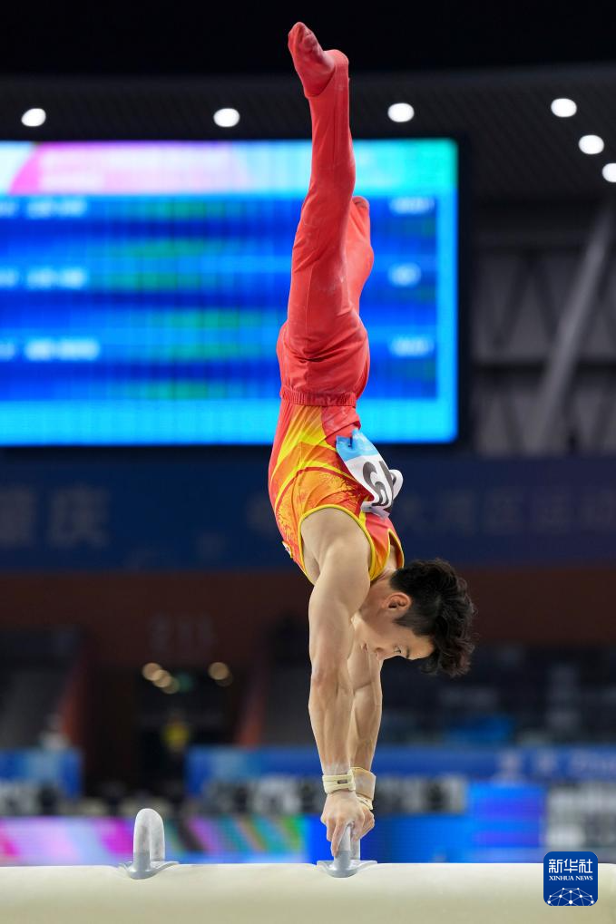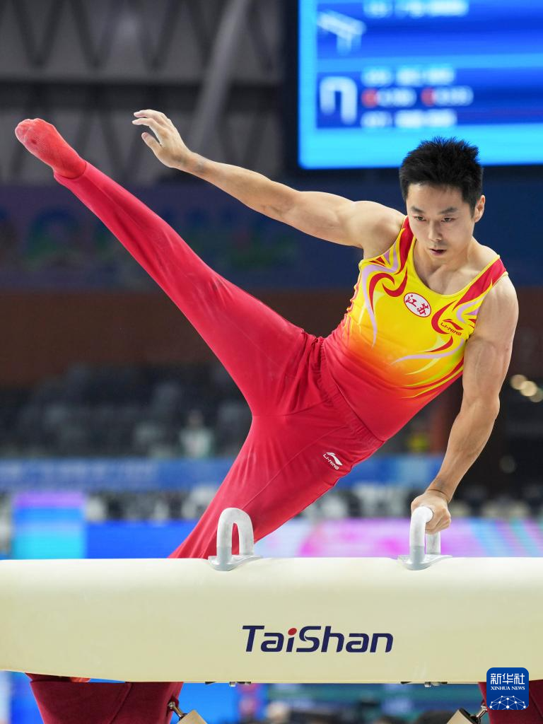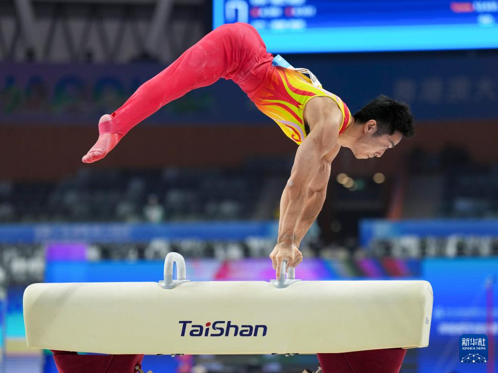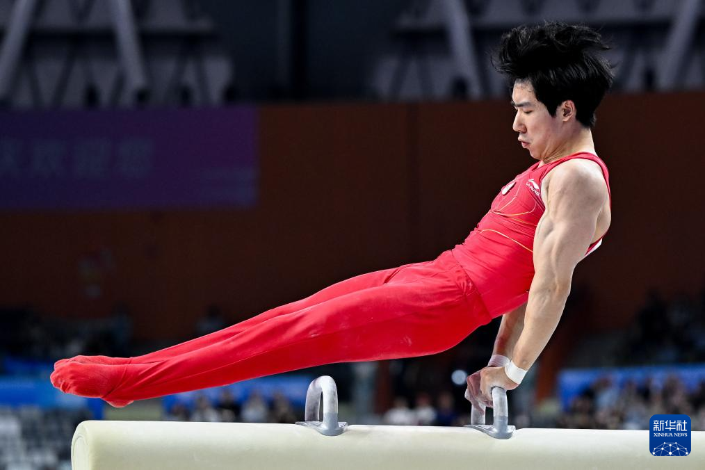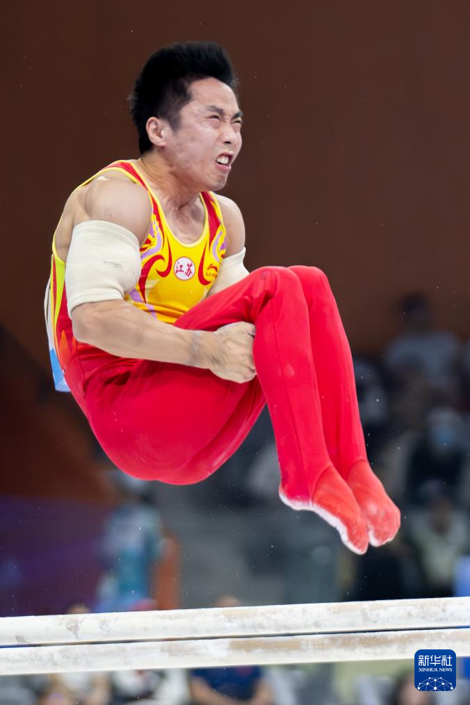 当日,第十五届全国运动会体操项目男子鞍马吊环双杠全能决赛在广东肇庆举行。