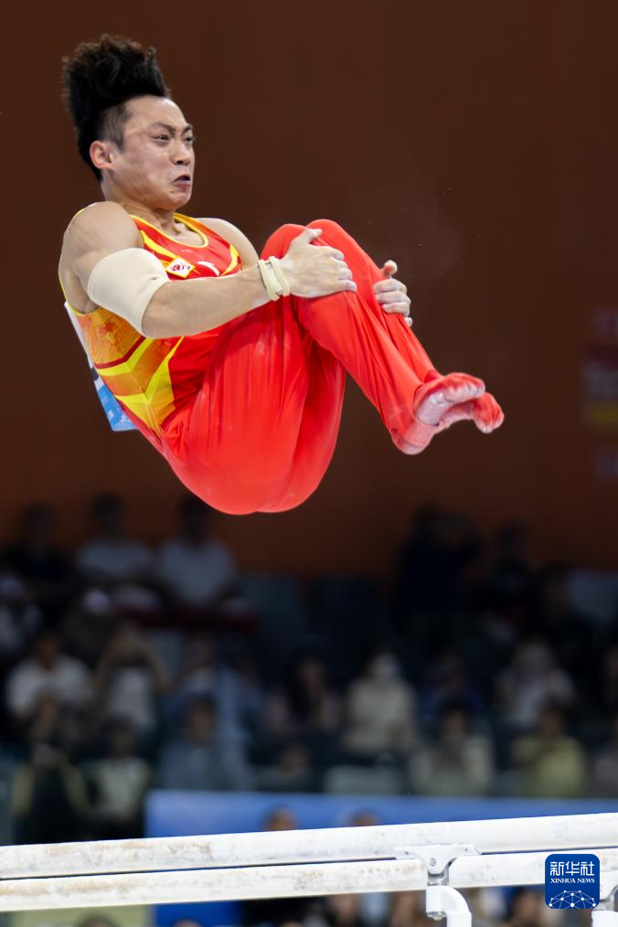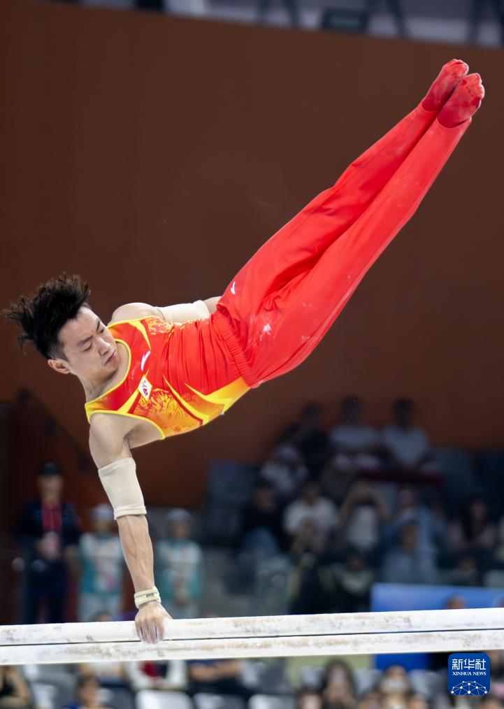11月14日,四川队选手邹敬园在双杠比赛中。最终,他获得男子鞍马吊环双杠全能决赛冠军。