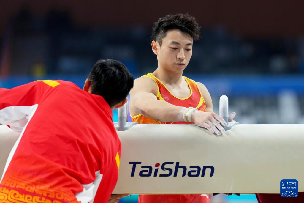 11月14日,四川队选手邹敬园在鞍马比赛前准备,他在男子鞍马吊环双杠全能决赛中获得冠军。