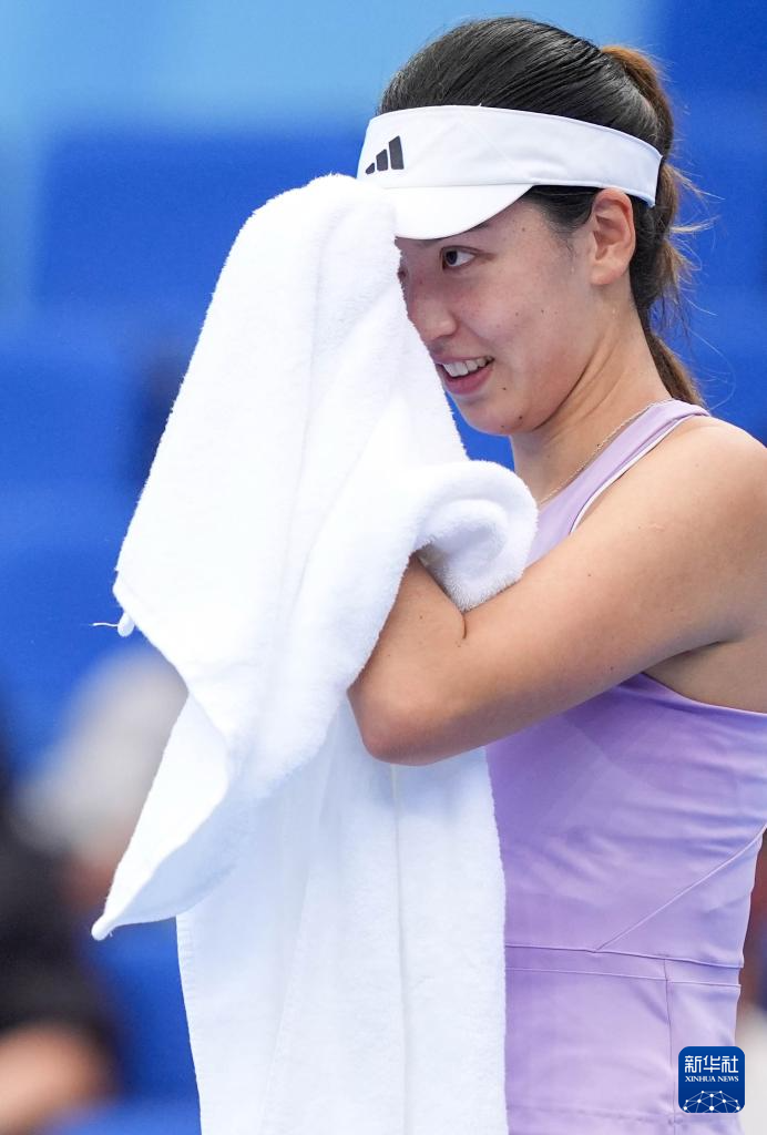 11月14日,广东队选手王欣瑜在比赛间歇用毛巾擦汗。最终,她2比0战胜福建队选手王育萍,晋级下一轮。