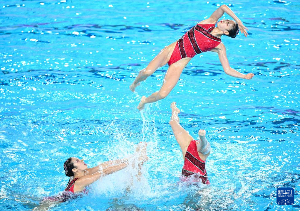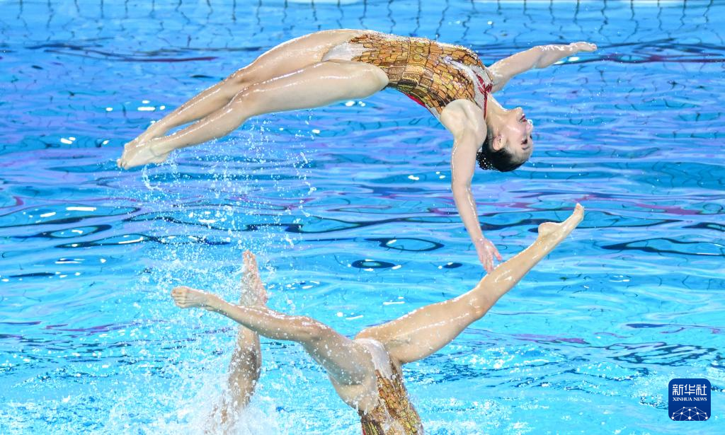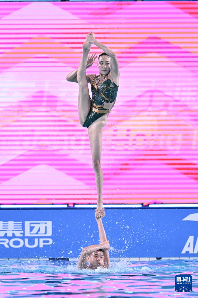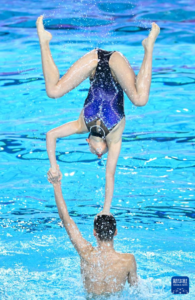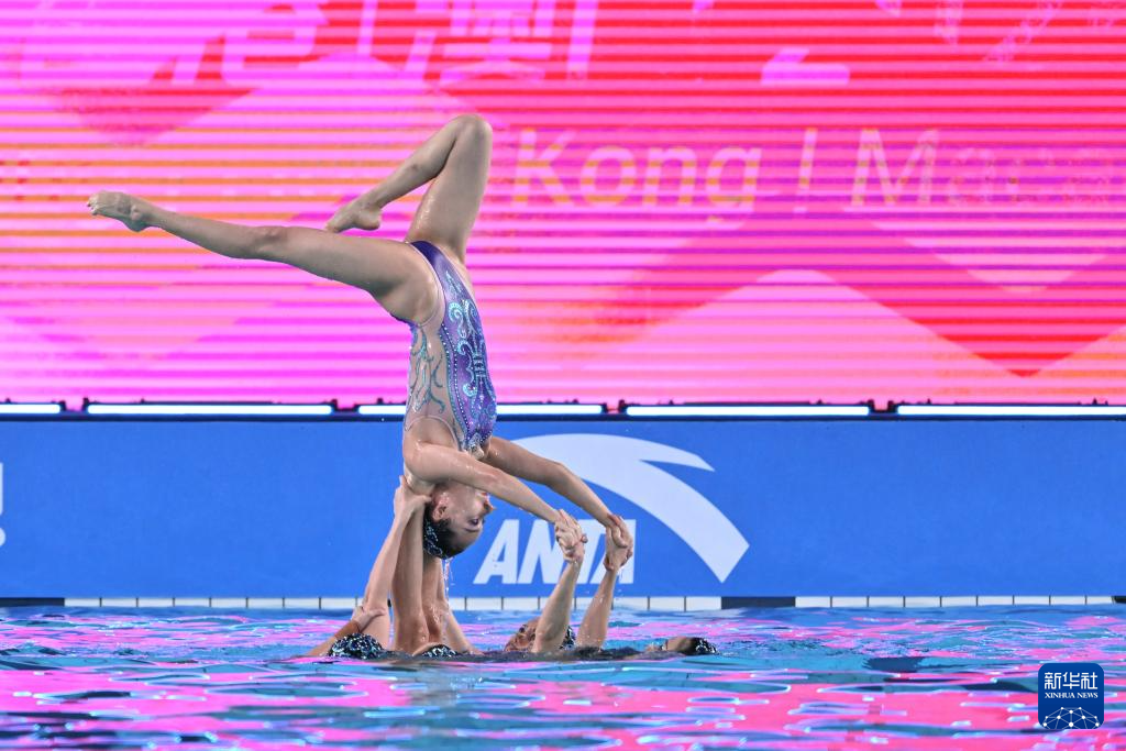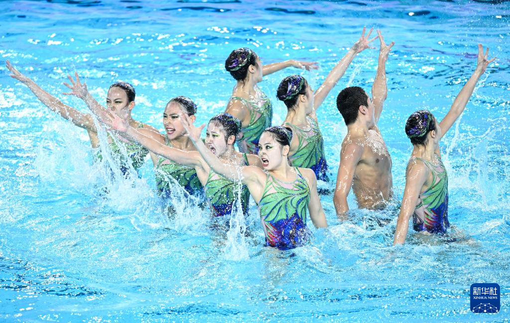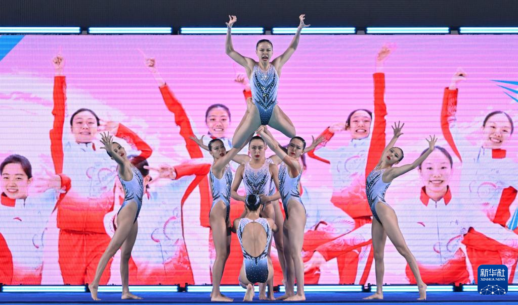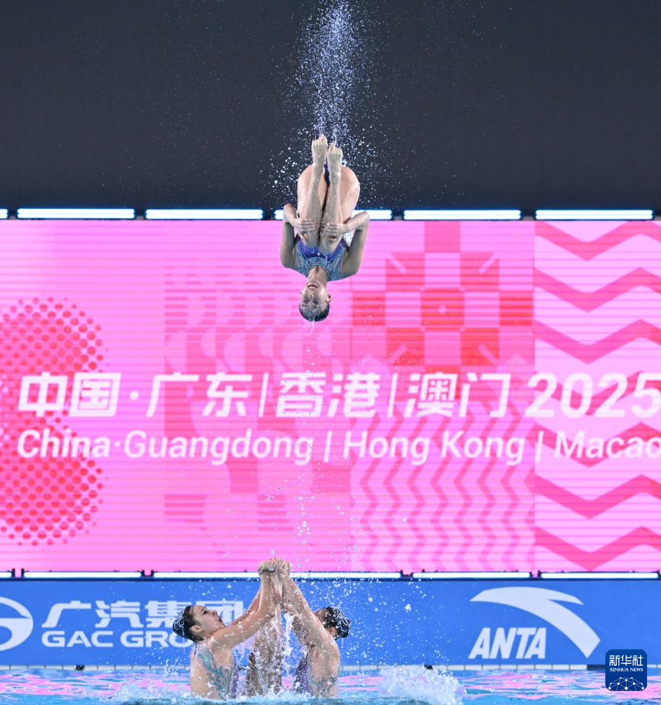 当日,第十五届全国运动会花样游泳项目集体自由自选比赛在广东江门举行。