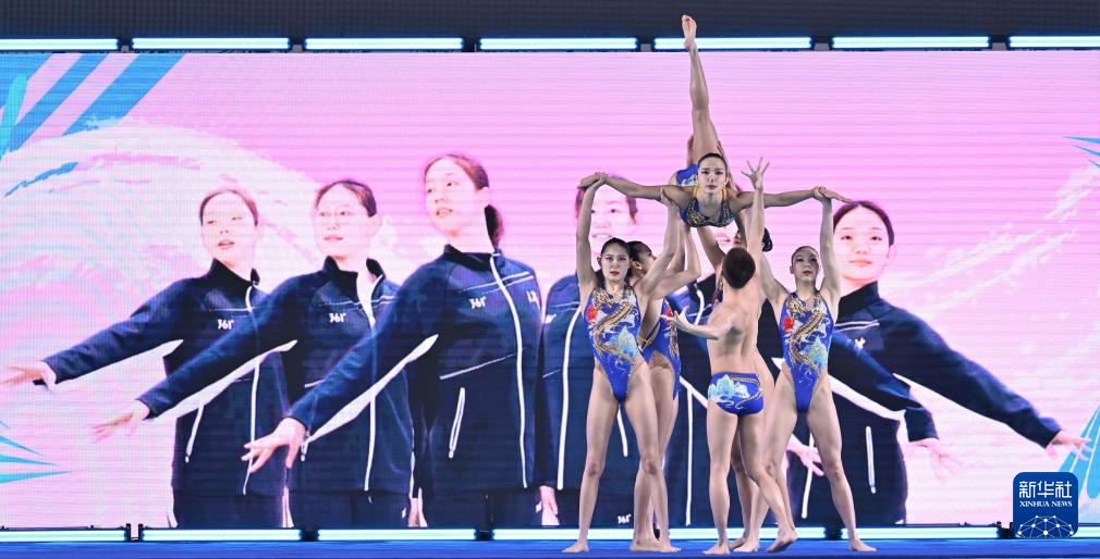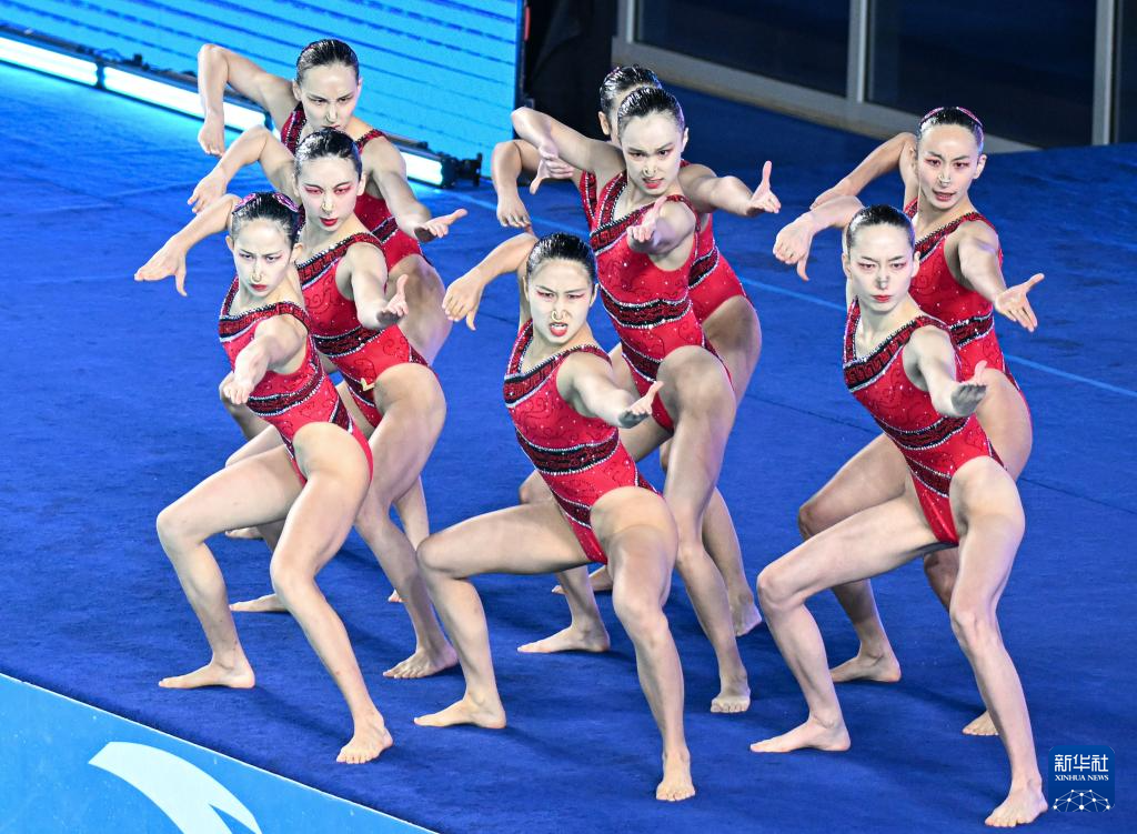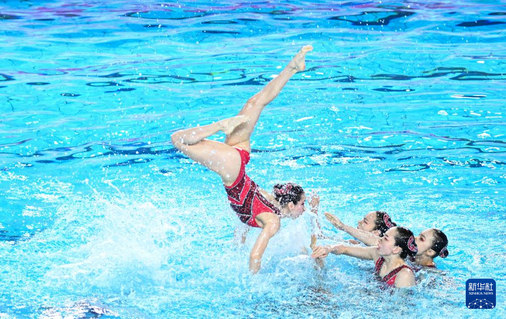 11月13日,四川队在比赛中。该队集体自由自选小项成绩位列第四名。