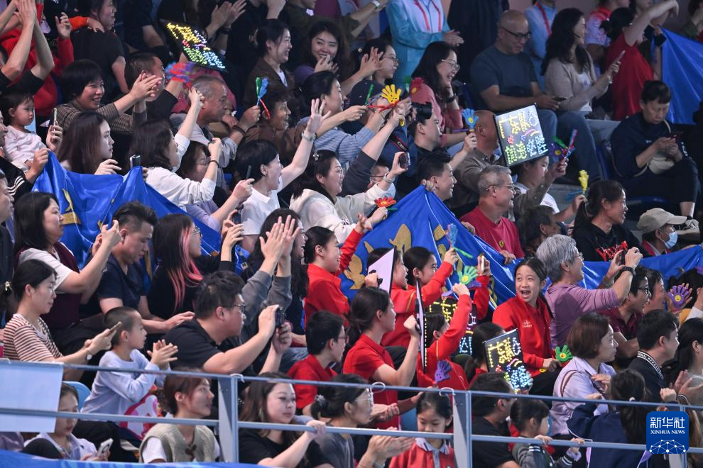 11月13日,北京队在比赛中。该队集体自由自选小项成绩位列第三名。