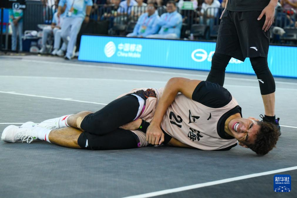11月14日,上海队球员马典成受伤倒地。