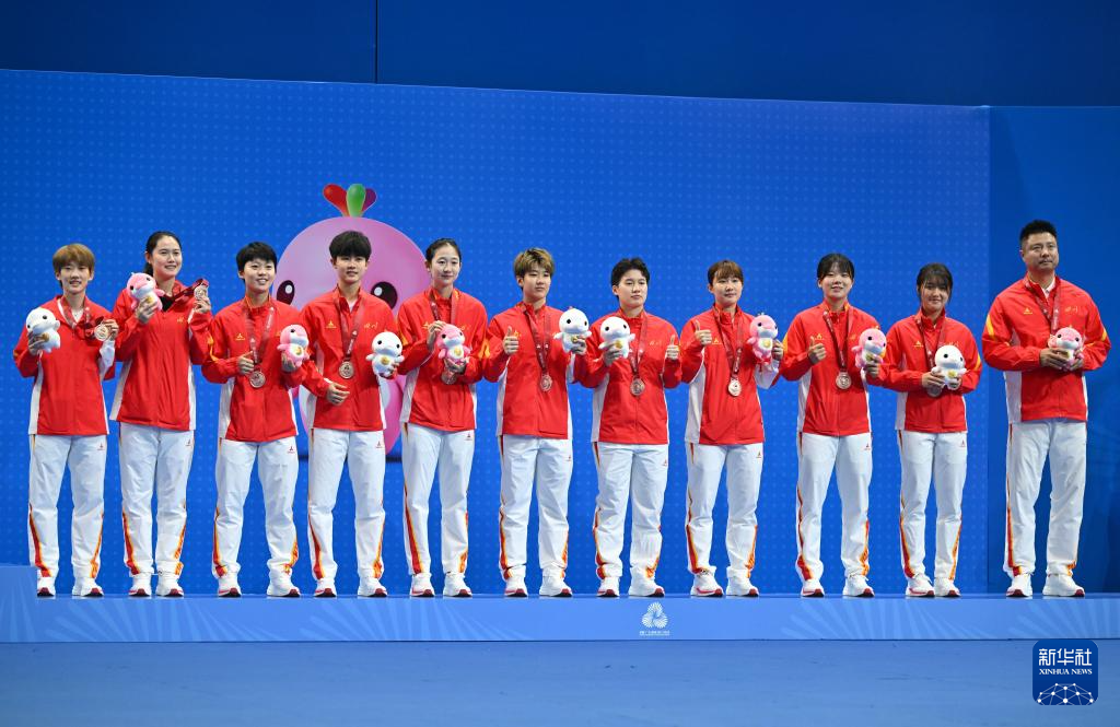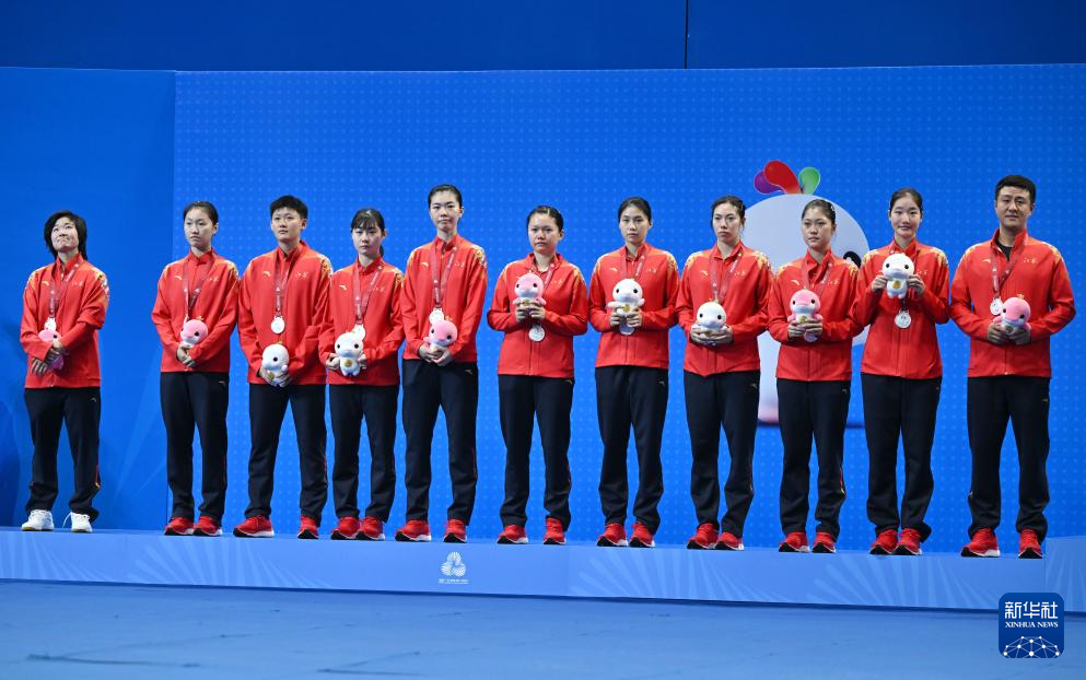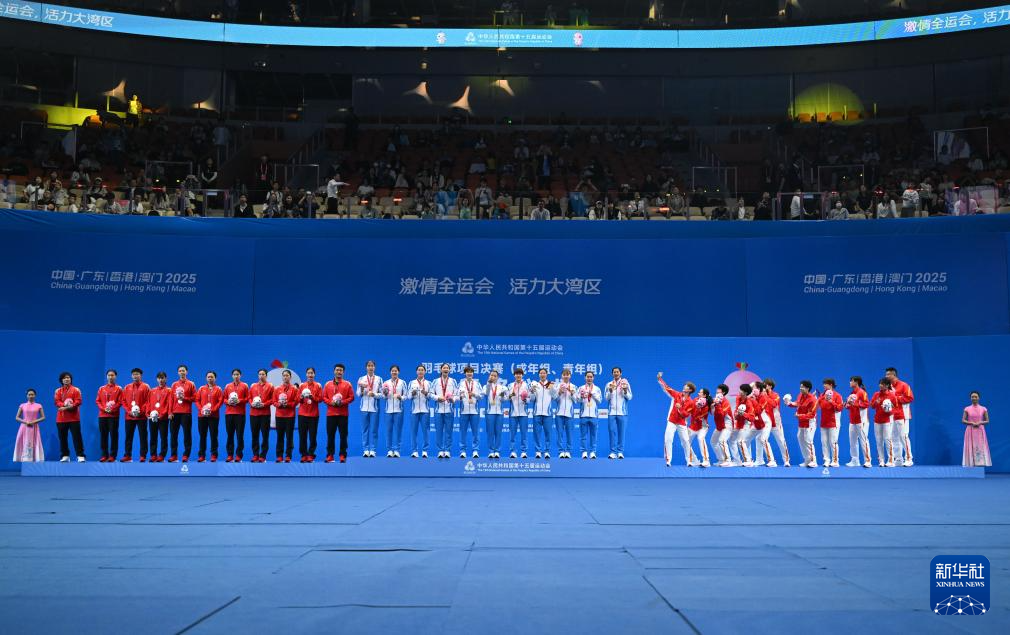 11月14日,冠军浙江队(中)、亚军江苏队(左)和季军四川队在颁奖仪式上。