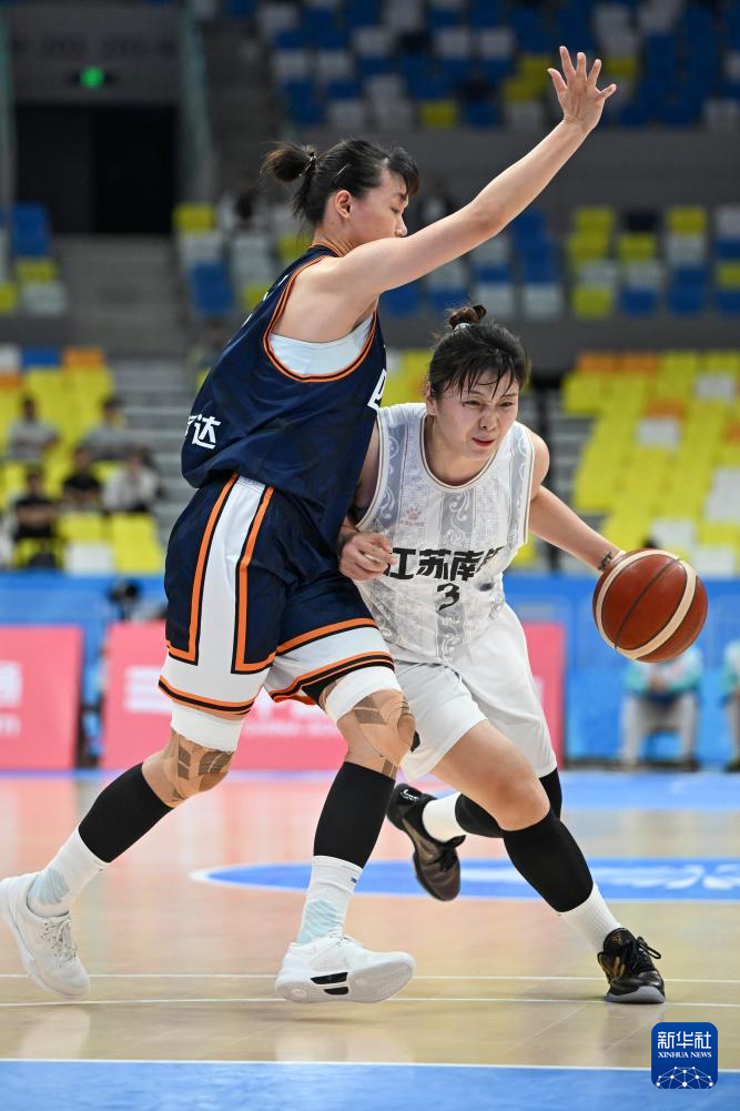11月14日,江苏队球员罗欣棫(右)在四川队球员贾赛琪的防守下进攻。
