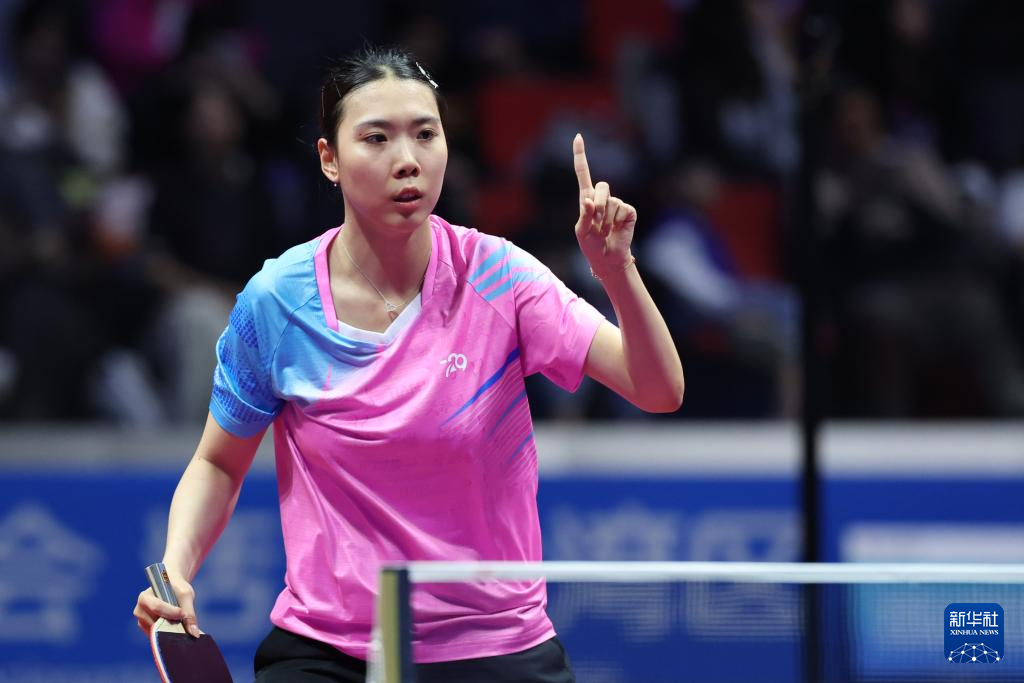 11月14日,天津队选手齐菲在女单比赛中。她3比1战胜黑龙江队选手张瑞。