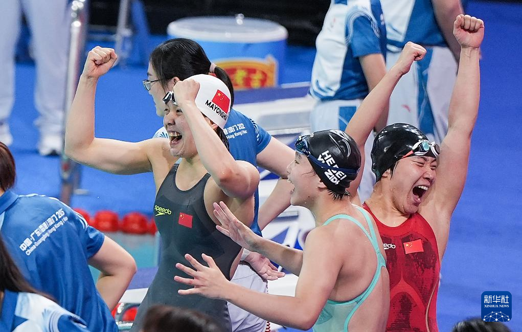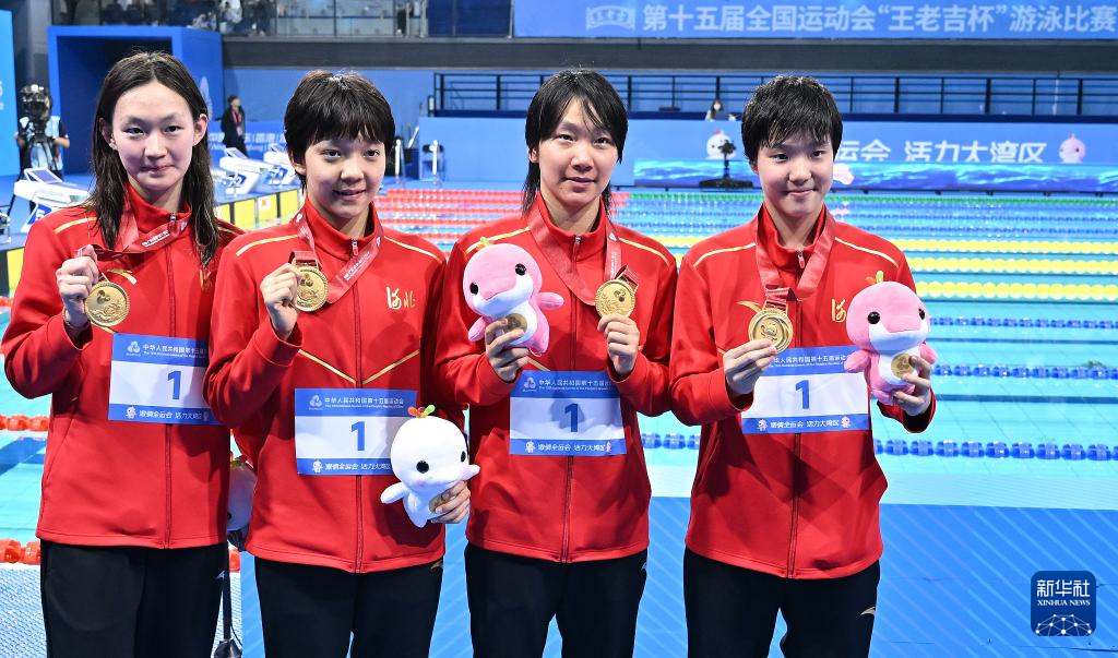 当日,第十五届全国运动会游泳女子4X200米自由泳接力决赛在广东省深圳市举行。