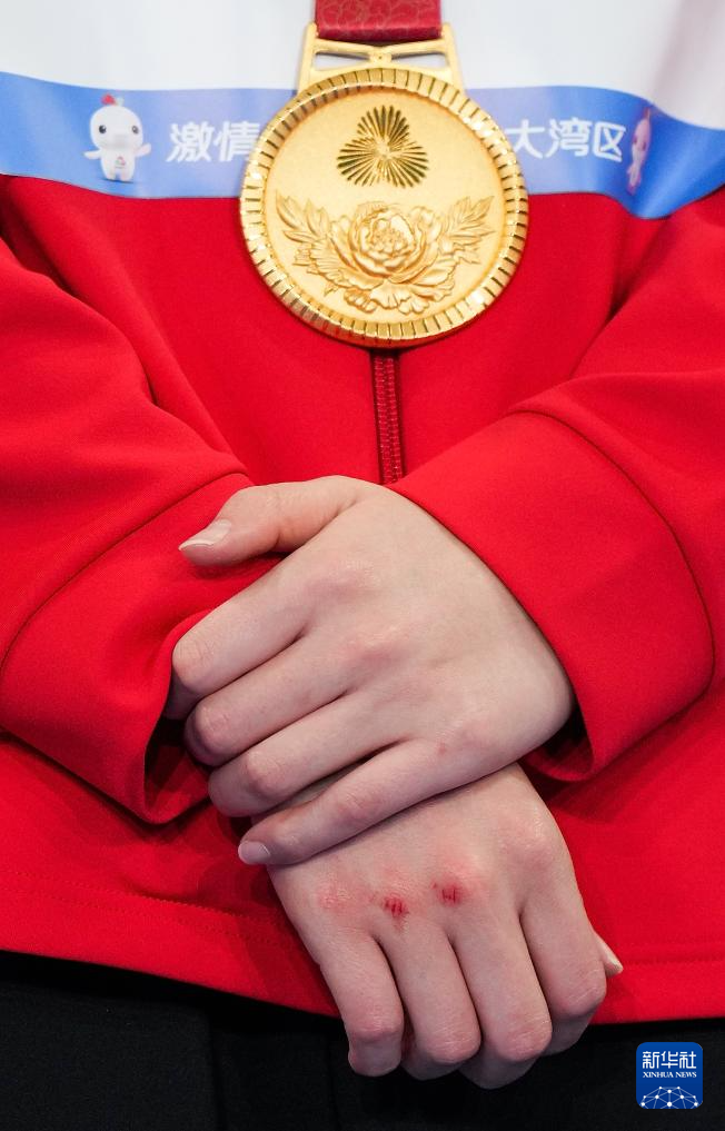 11月14日,河北队选手李冰洁在颁奖仪式上。河北队获得冠军。
