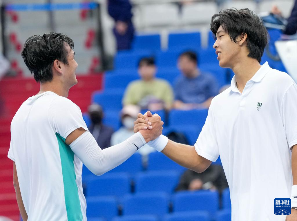 11月14日,香港队选手黄泽林(左)与山西队选手段皓在男子单打第1轮比赛结束后握手致意。