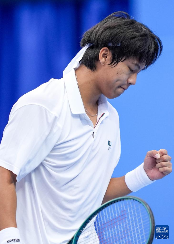 11月14日,香港队选手黄泽林在男子单打第1轮比赛得分后庆祝。最终,他2比0战胜山西队选手段皓,晋级下一轮。