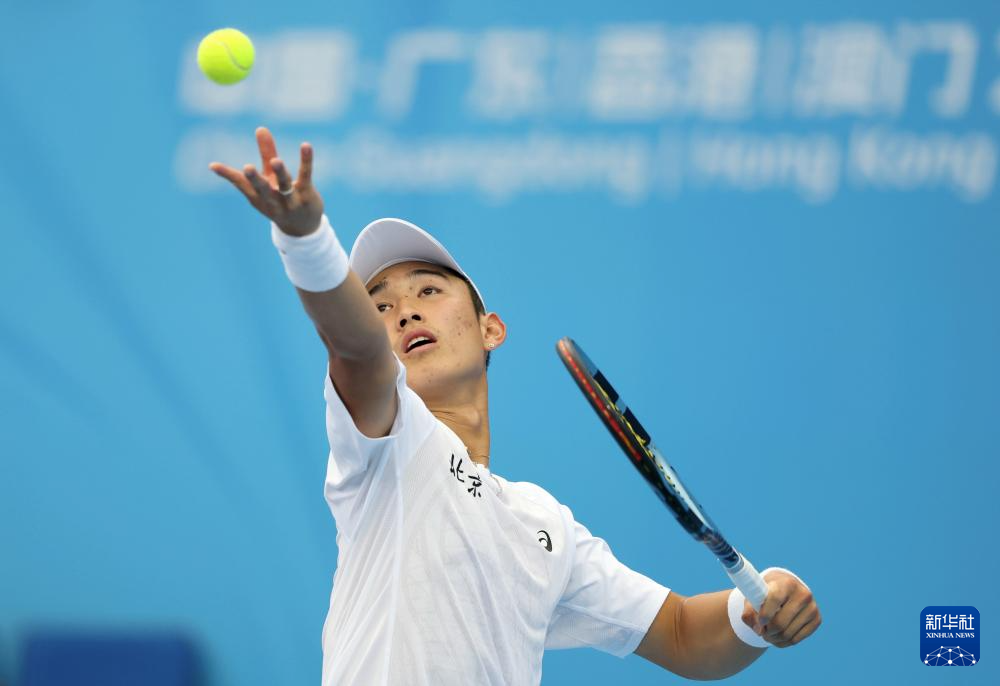 当日,第十五届全国运动会网球项目男子单打第一轮在广东横琴举行。
