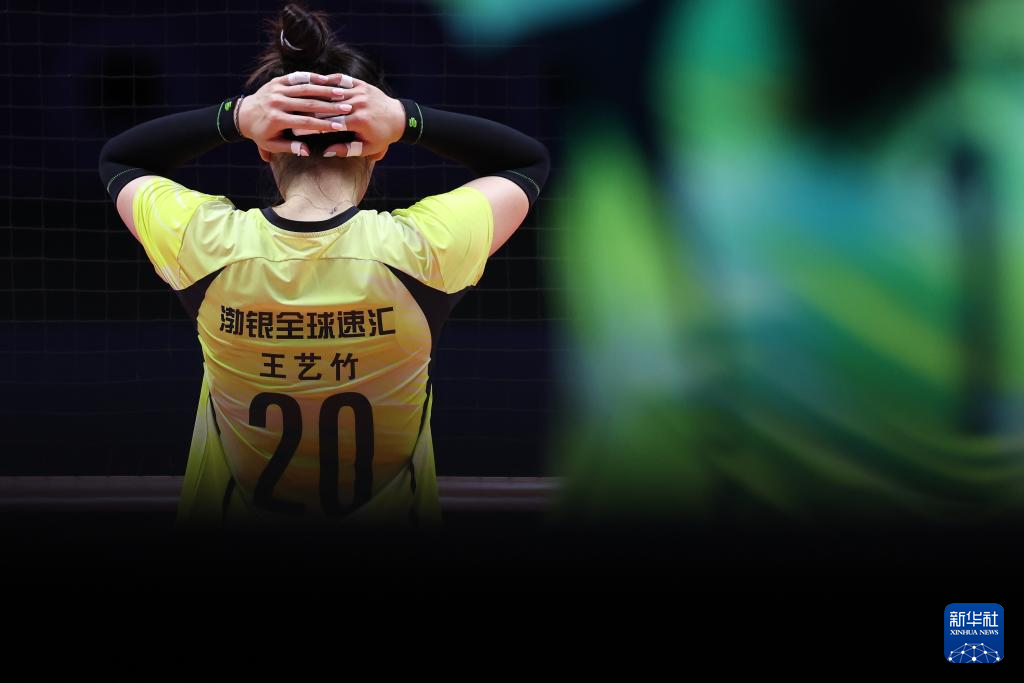 11月14日,天津队球员王艺竹(左)在比赛中准备。