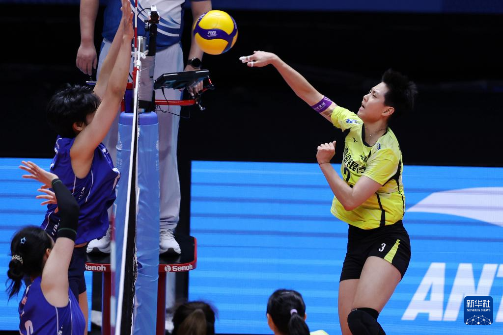 11月14日,天津队球员王媛媛(右一)在比赛中进攻。