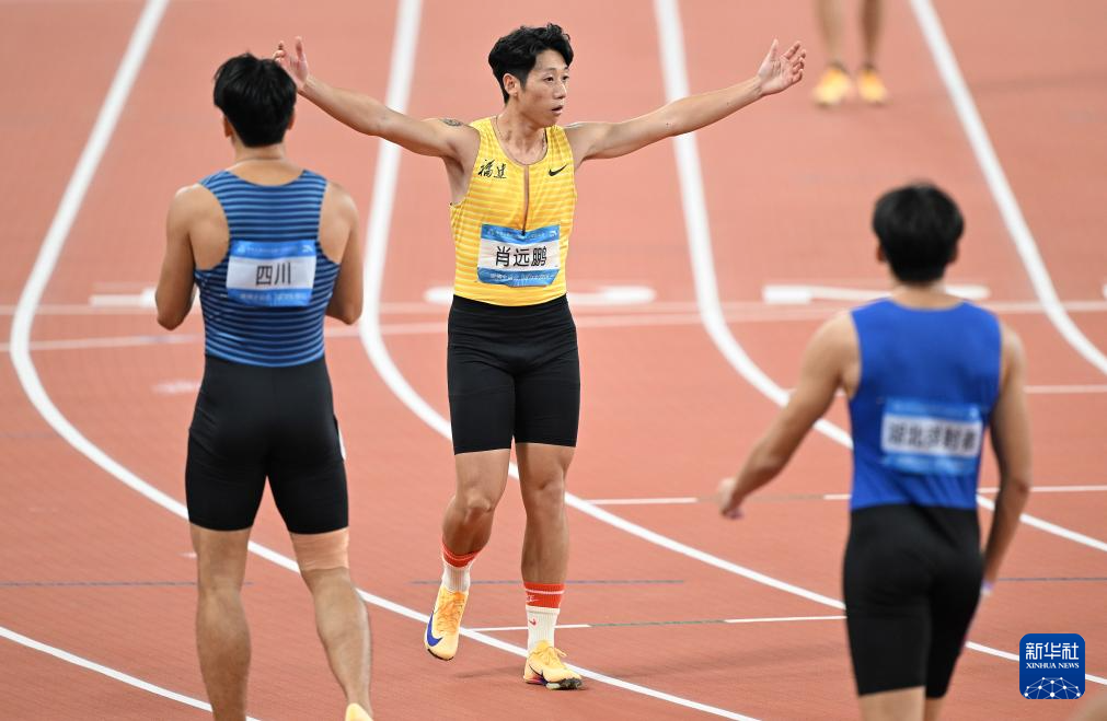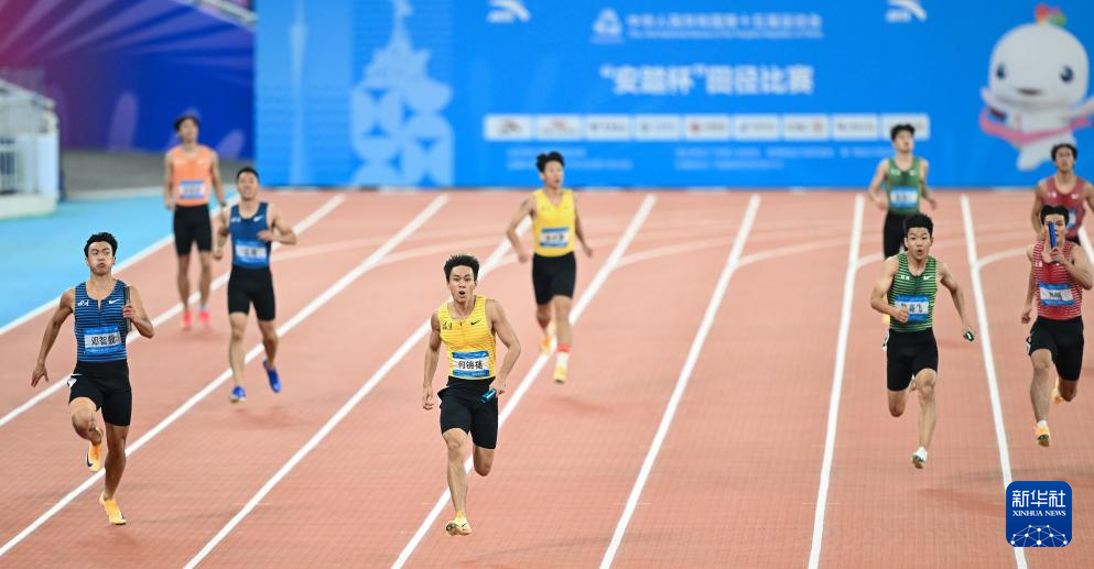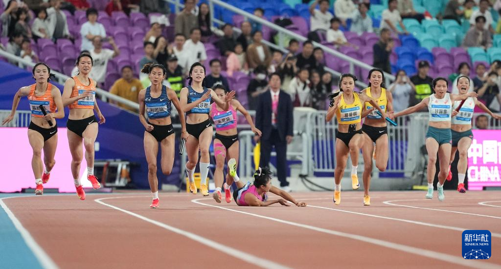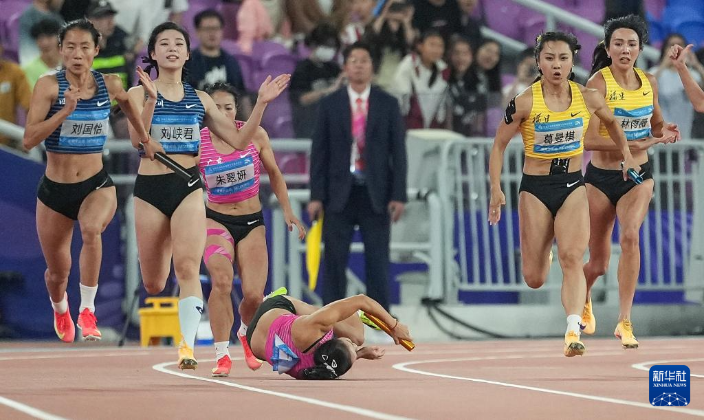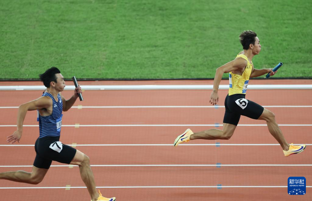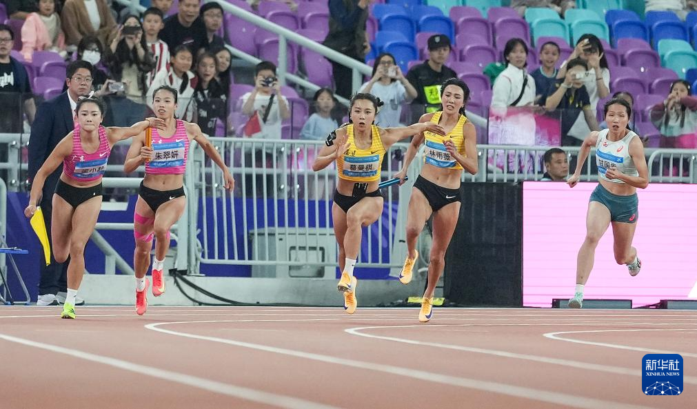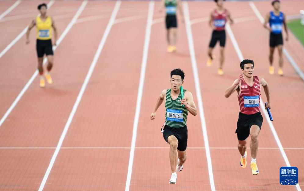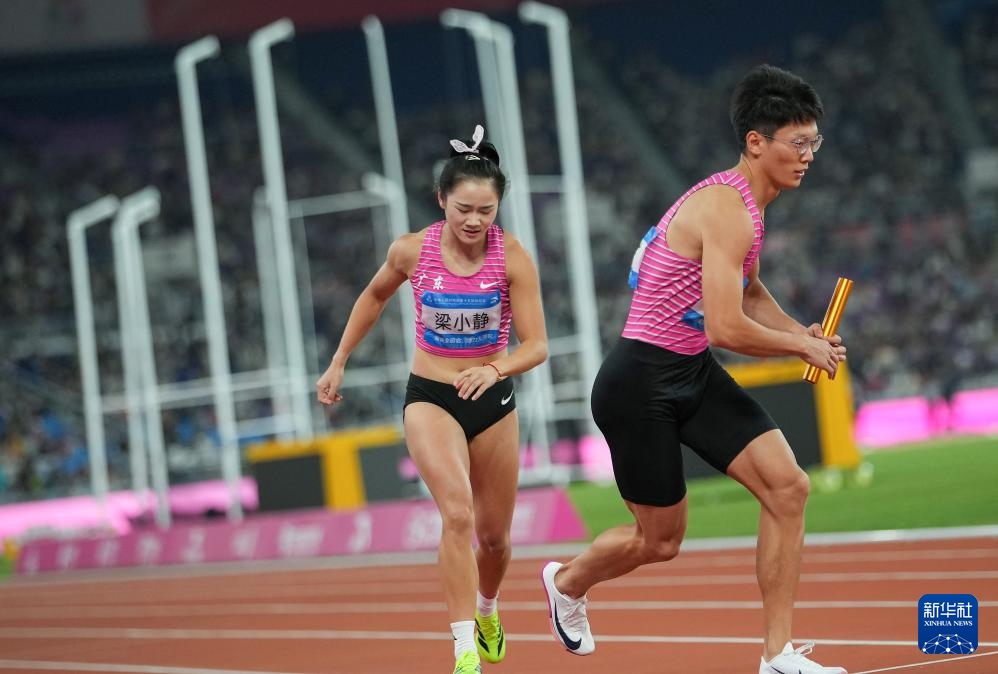 当日,第十五届全国运动会田径4X100米混合接力决赛在广州举行。