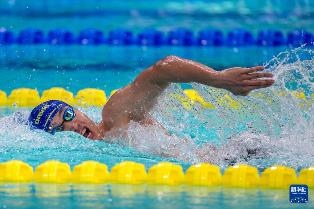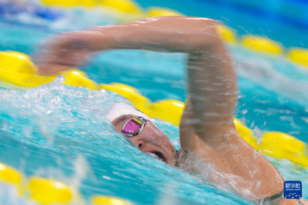 11月15日,中国公安体育协会队选手季新杰在男子4x200米自由泳接力预赛中。中国公安体育协会队晋级决赛。