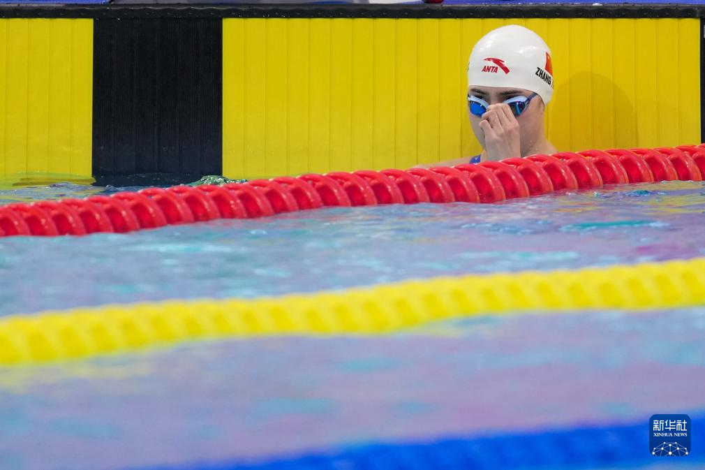 11月15日,江苏队选手张雨霏在女子50米蝶泳预赛后查看成绩。她晋级半决赛。