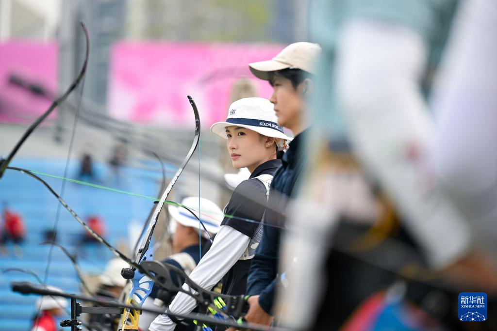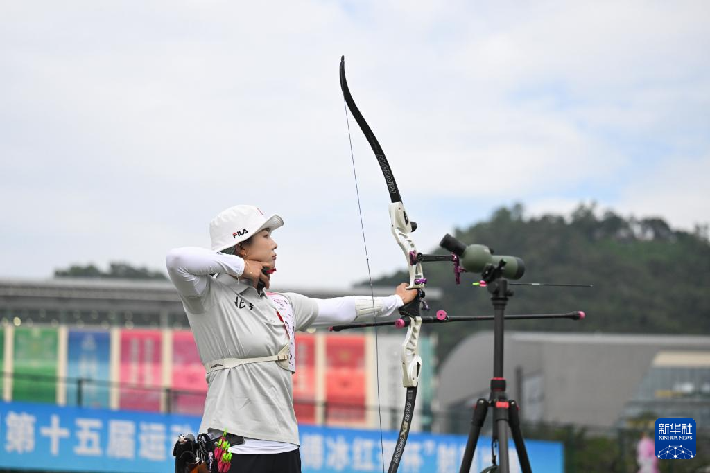 当日,第十五届全国运动会射箭项目女子反曲弓个人1/16淘汰赛在深圳举行。