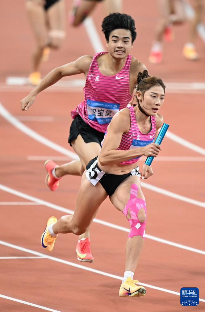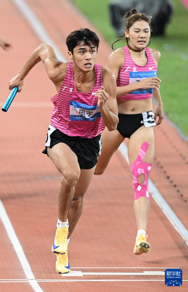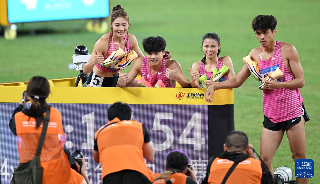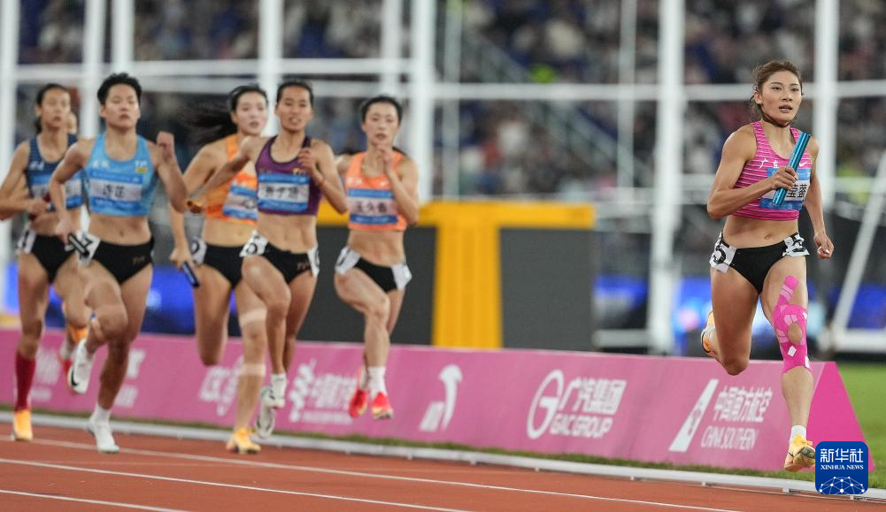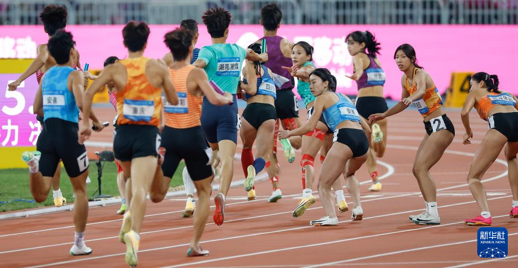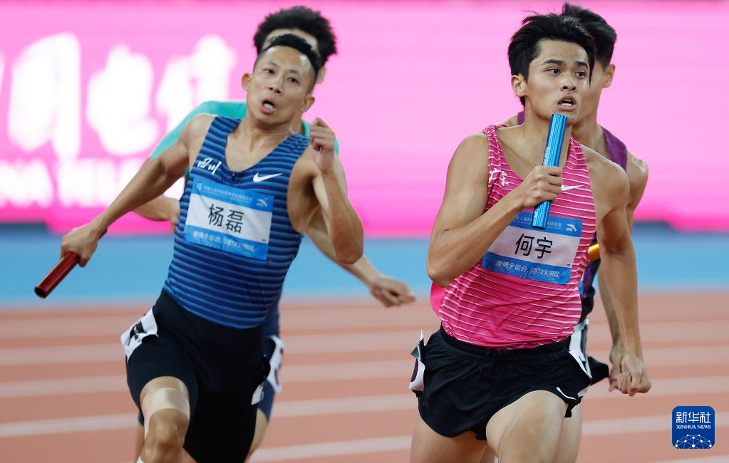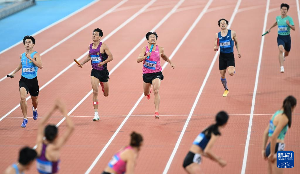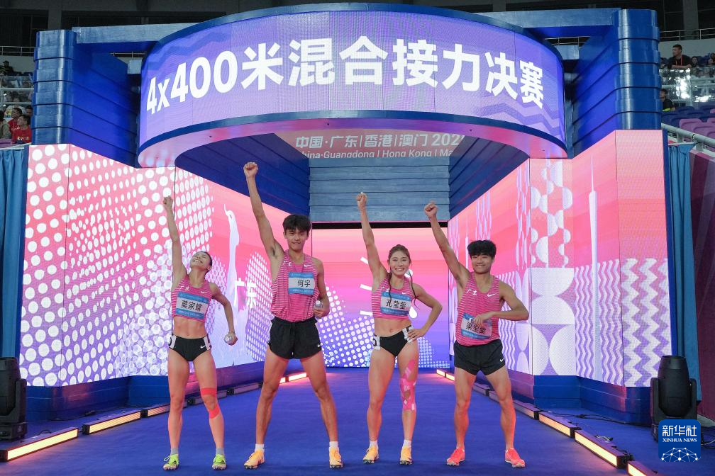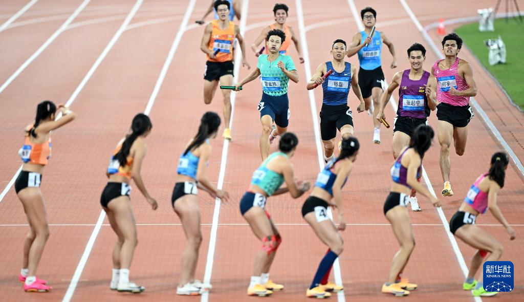 当日,第十五届全国运动会田径4X400米混合接力决赛在广州举行。