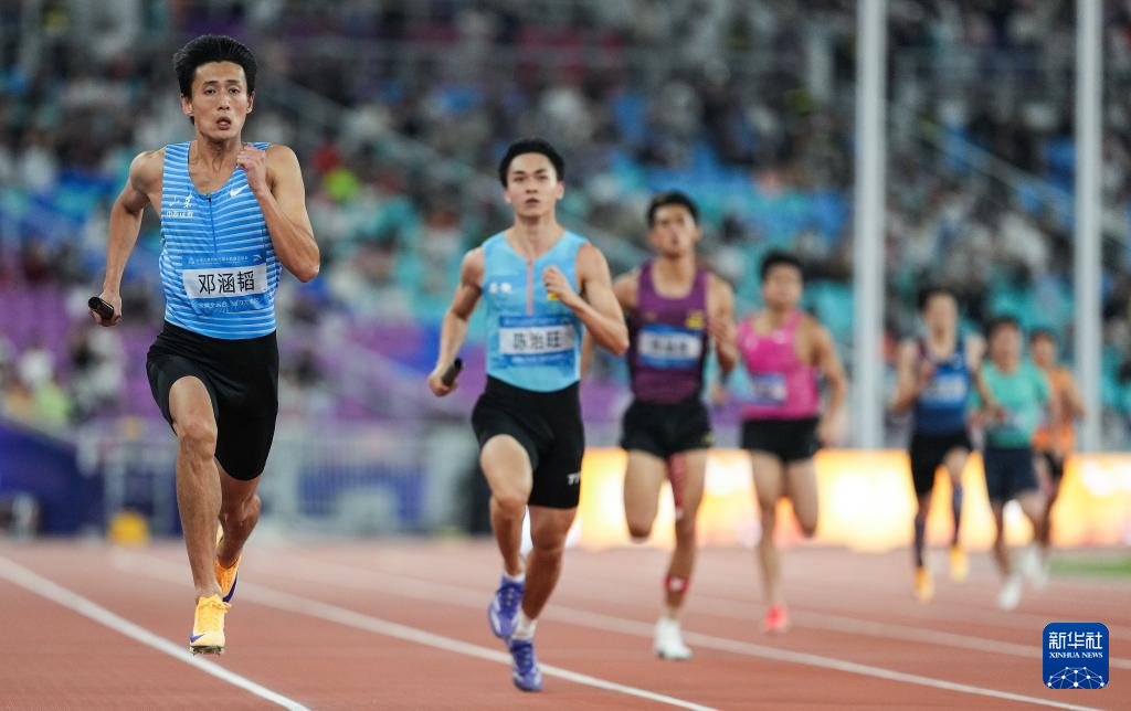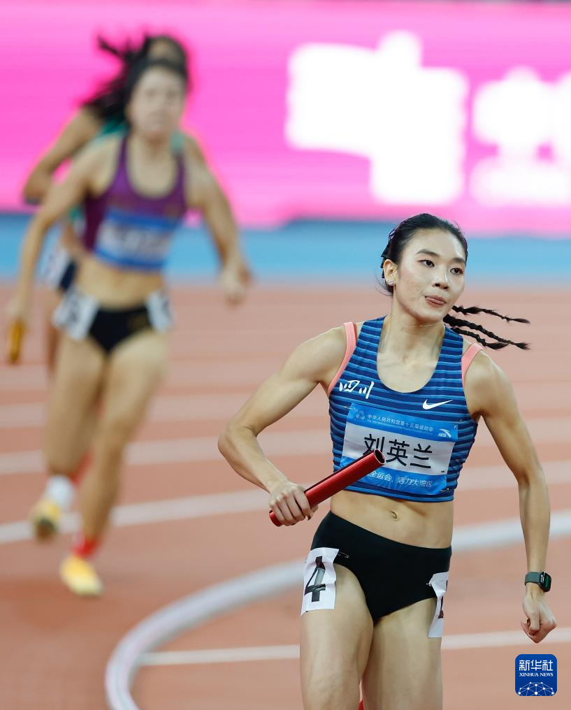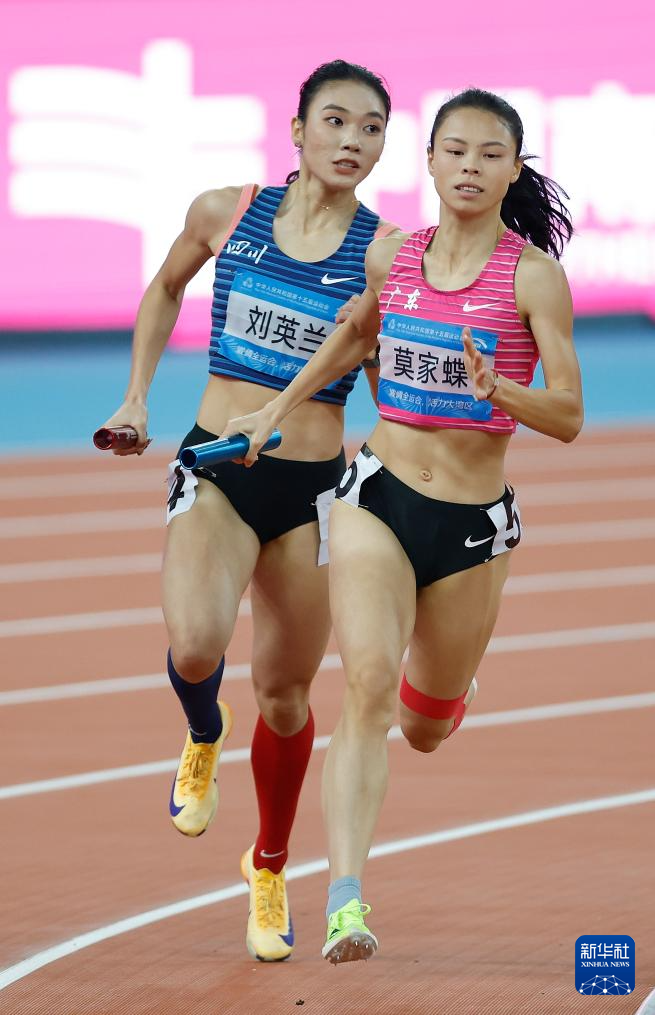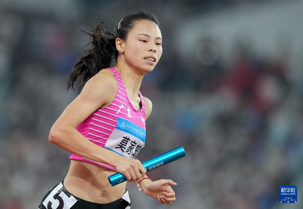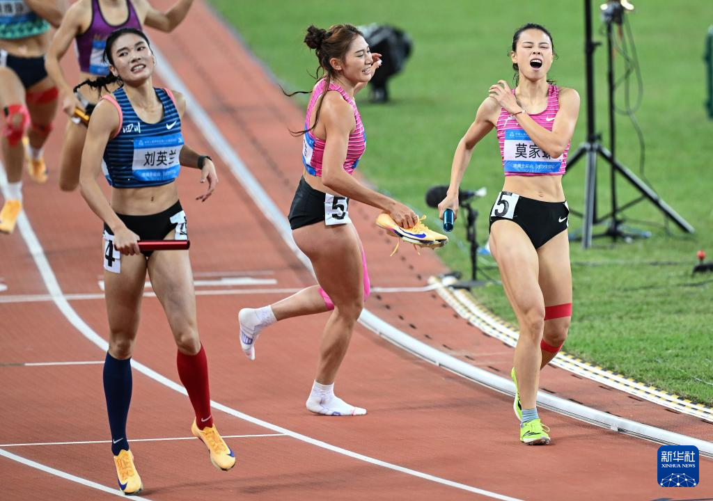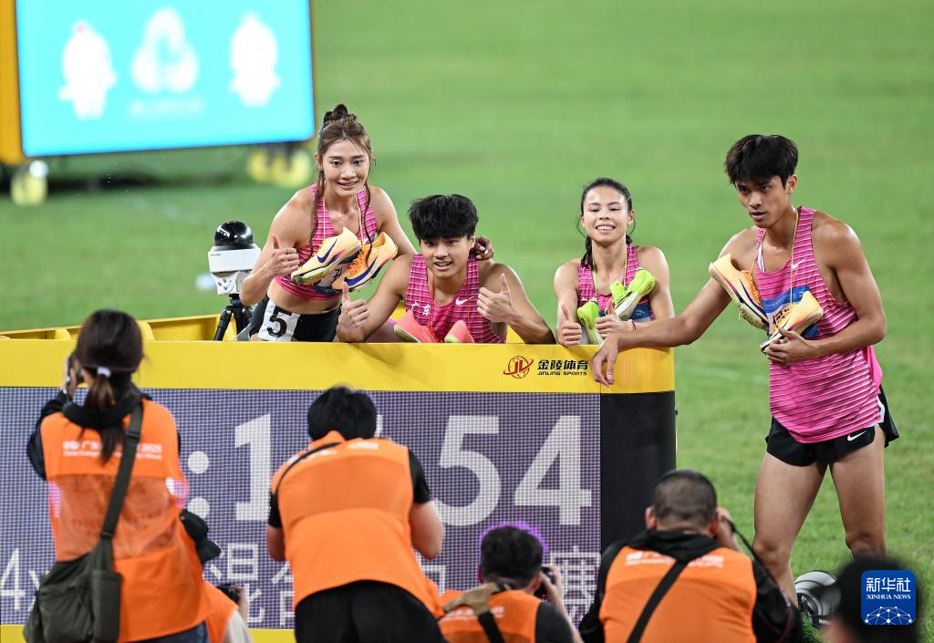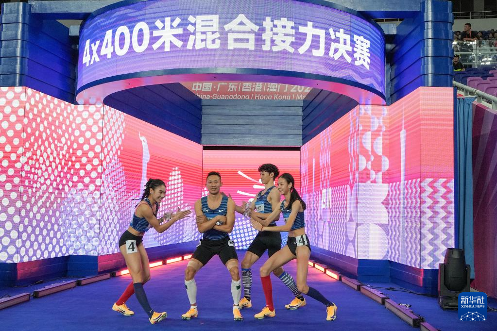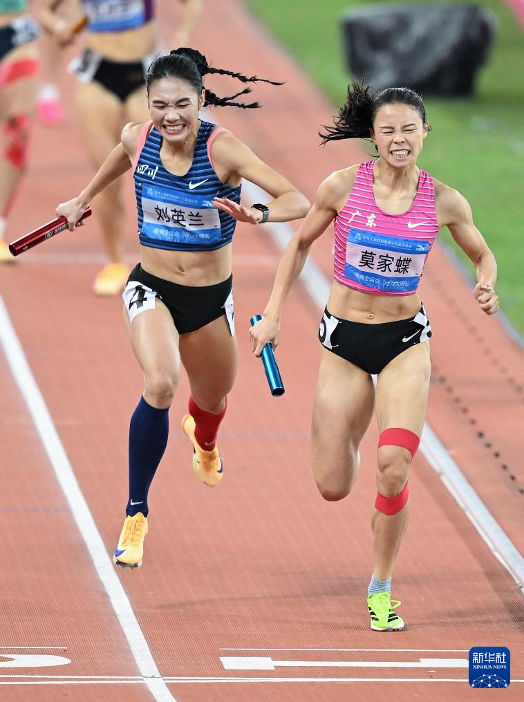 当日,第十五届全国运动会田径4X400米混合接力决赛在广州举行。