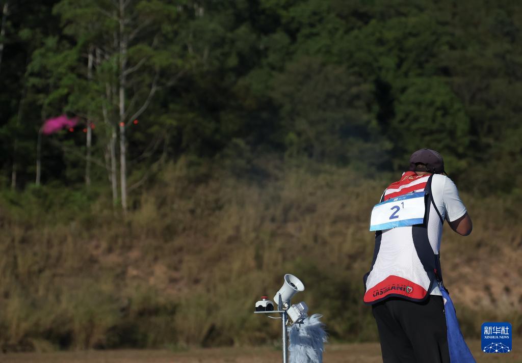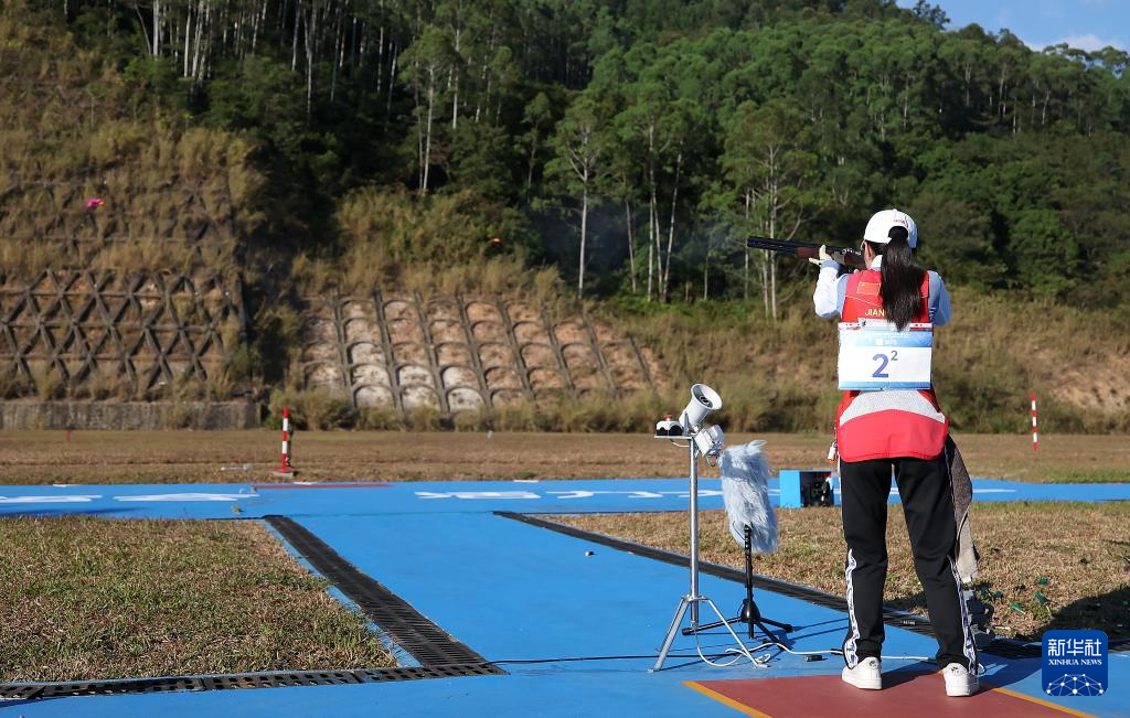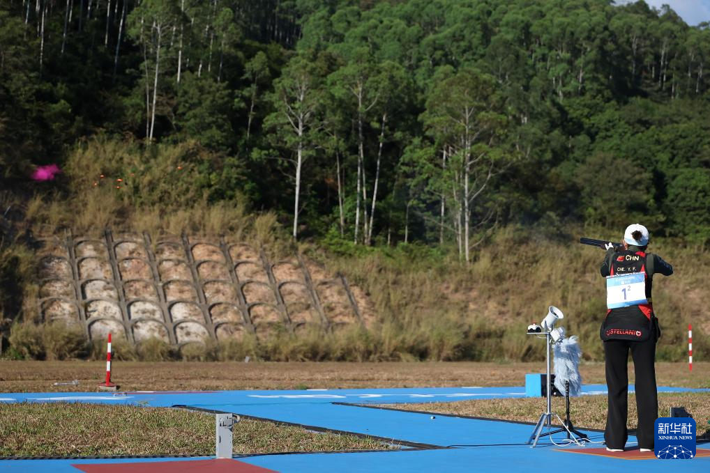当日,第十五届全国运动会射击项目飞碟双向混合团体金牌赛在广州举行,福建队组合余岭锋/江伊婷对阵广东队组合窦旭阳/车雨霏。