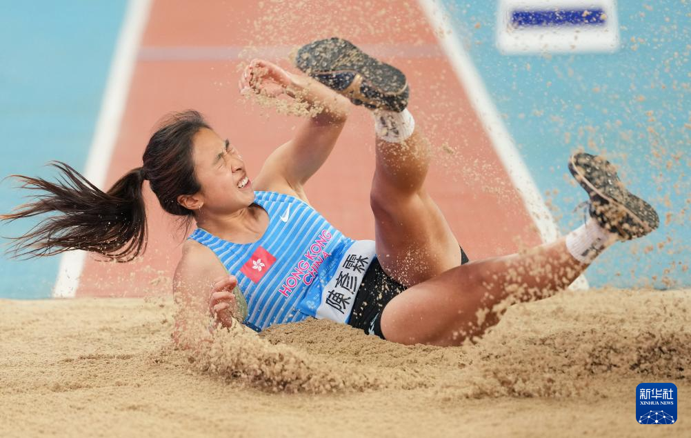 当日,第十五届全国运动会田径项目女子三级跳远及格赛在广州举行。