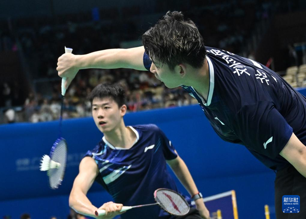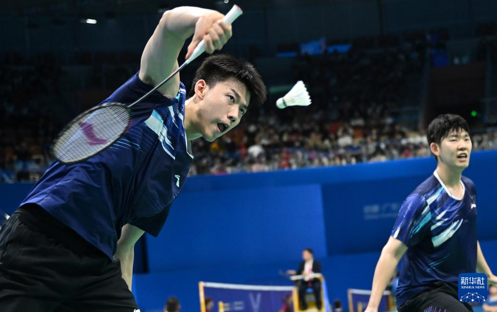 当日,第十五届全国运动会羽毛球男子双打十六分之一决赛在深圳举行。