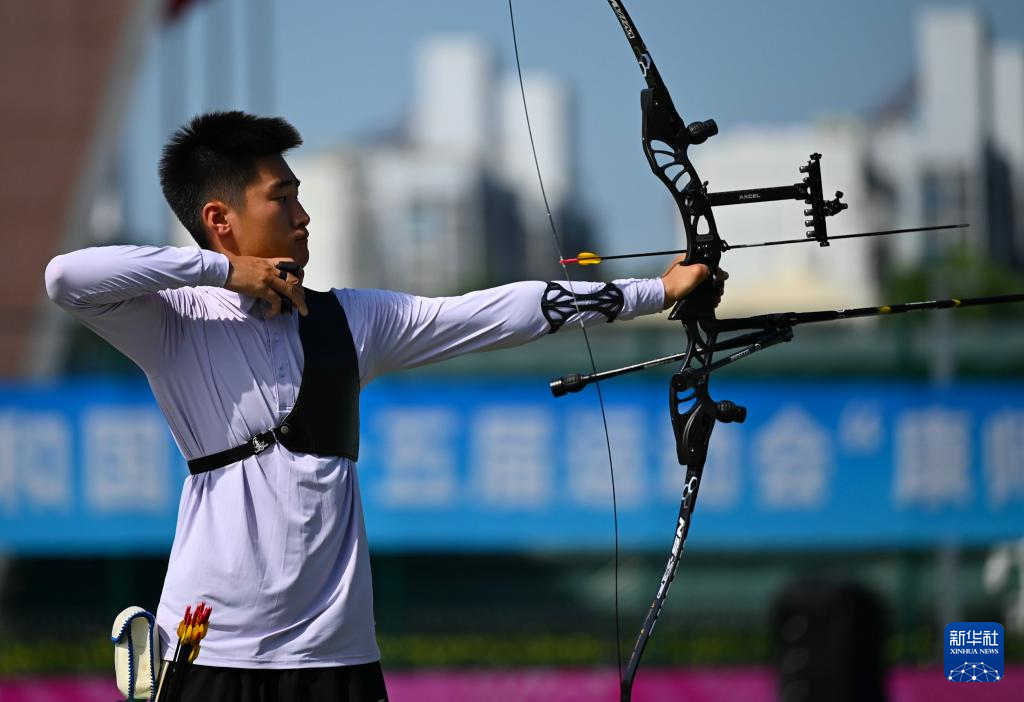 当日,第十五届全国运动会男子反曲弓个人1/16淘汰赛在深圳举行。
