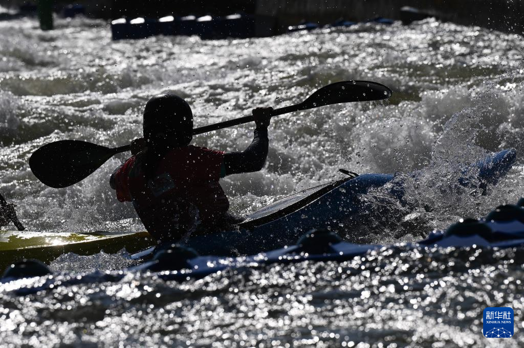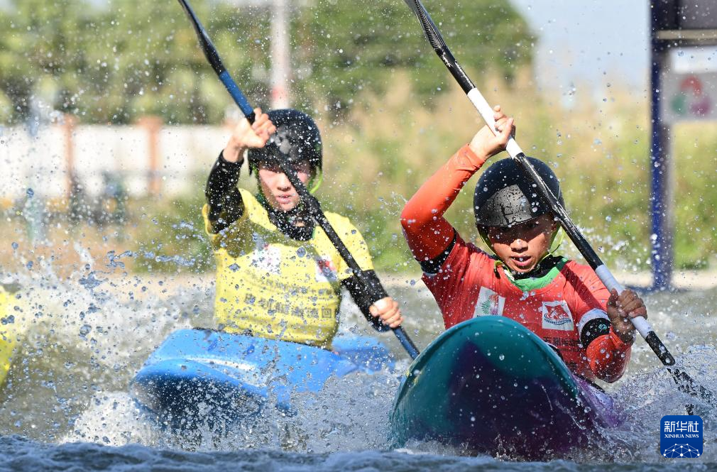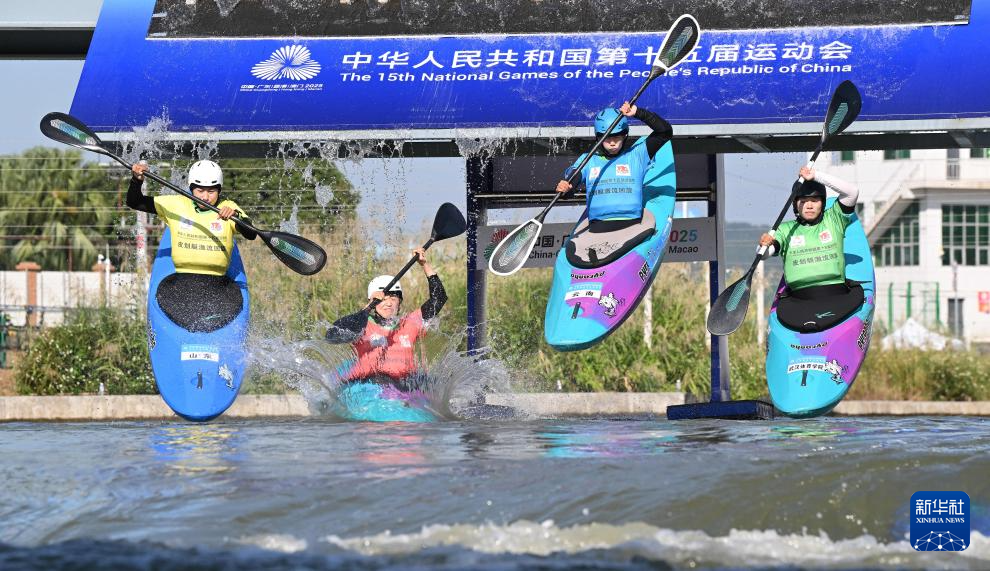 当日,第十五届全国运动会皮划艇激流回旋项目女子极限皮艇1/4决赛在广州举行。