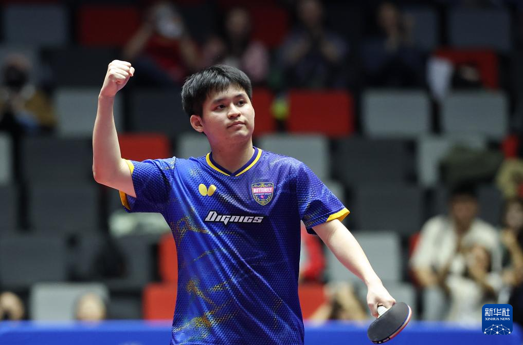 11月15日,林诗栋庆祝比赛胜利。