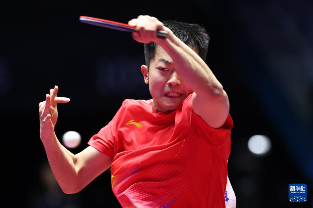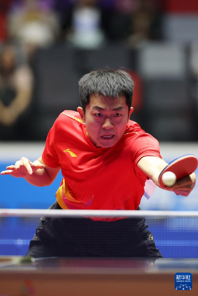 11月15日,林诗栋在比赛中回球。