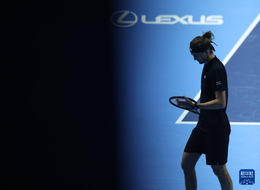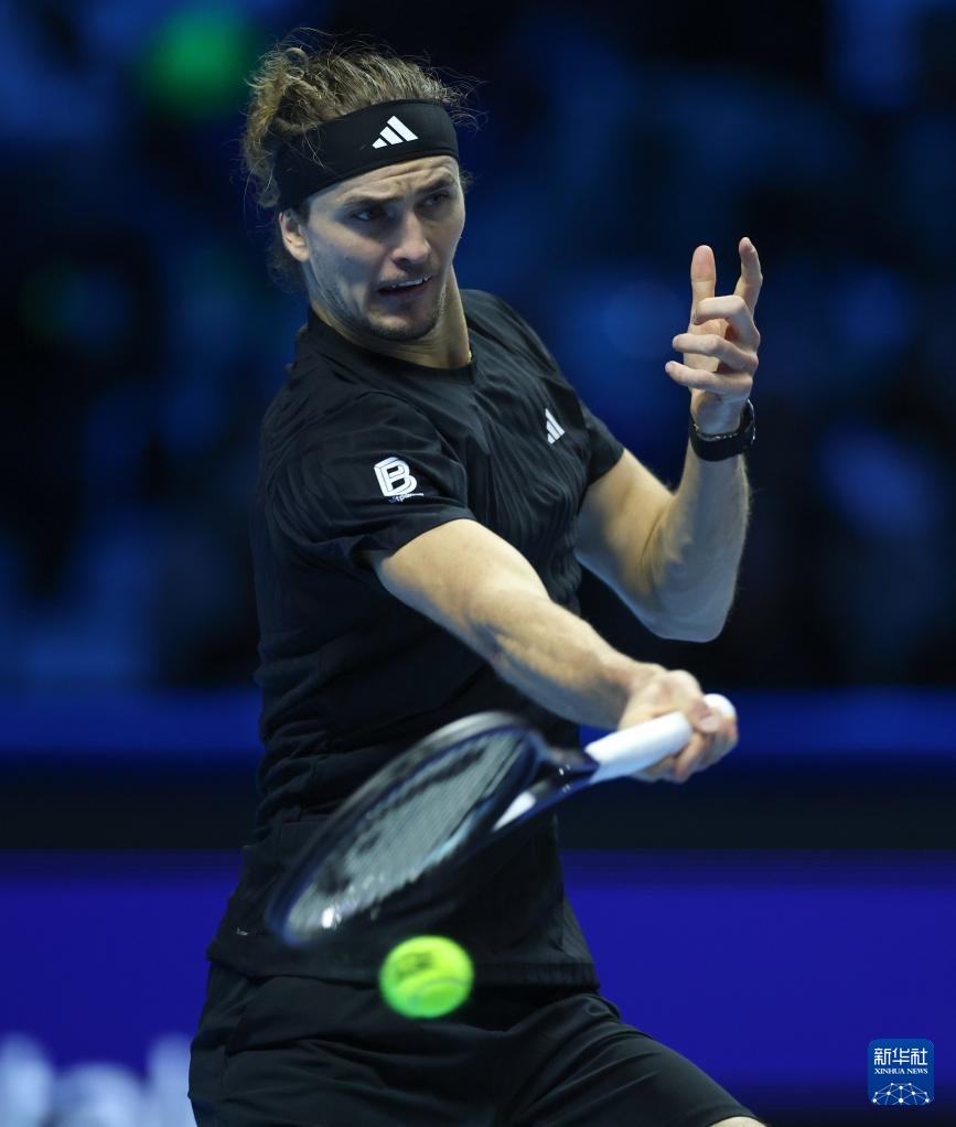 11月14日,德国选手兹韦列夫在比赛中回球。