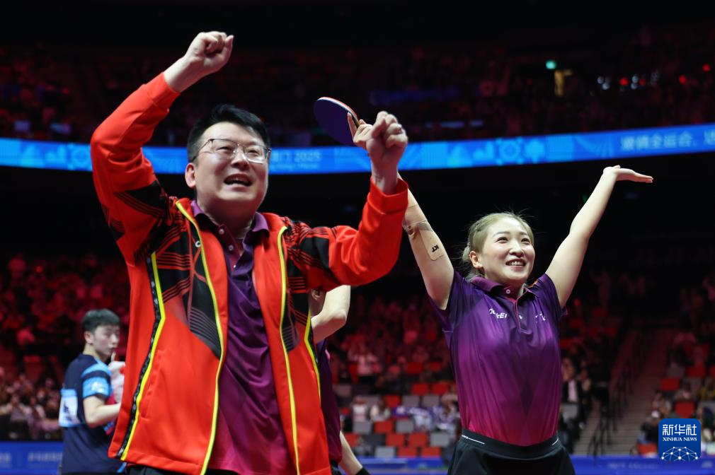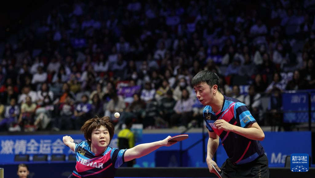 11月14日,在澳门进行的第十五届全国运动会乒乓球混合双打金牌赛中,广东队组合林高远/刘诗雯4比2战胜江苏队组合陈垣宇/蒯曼,夺得冠军。