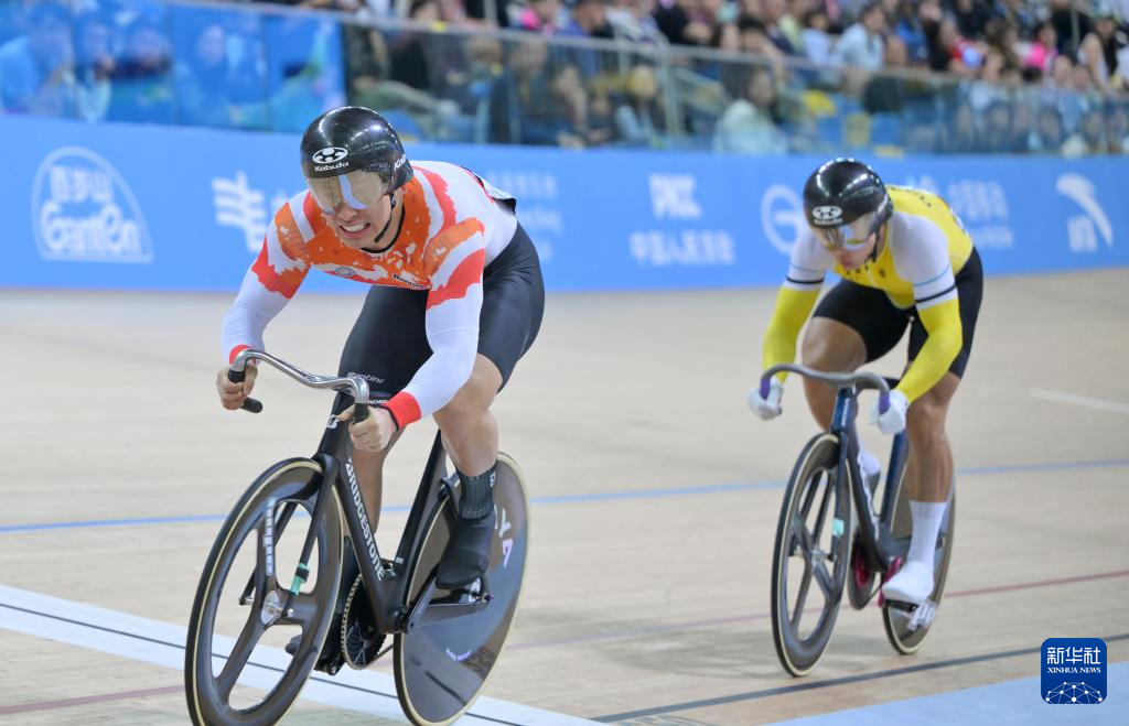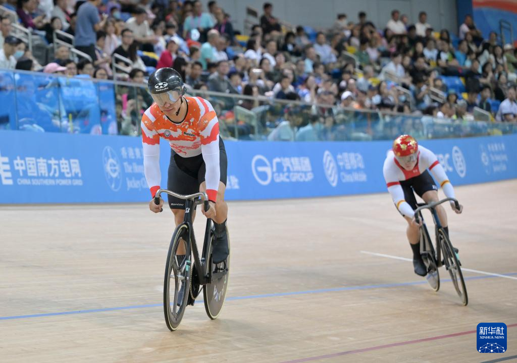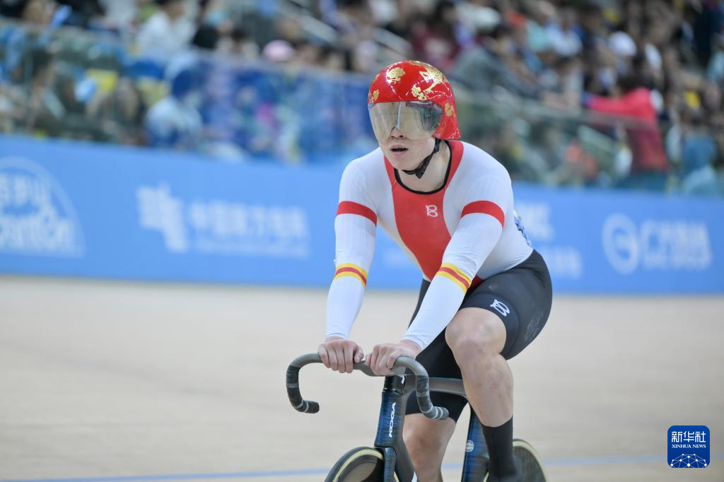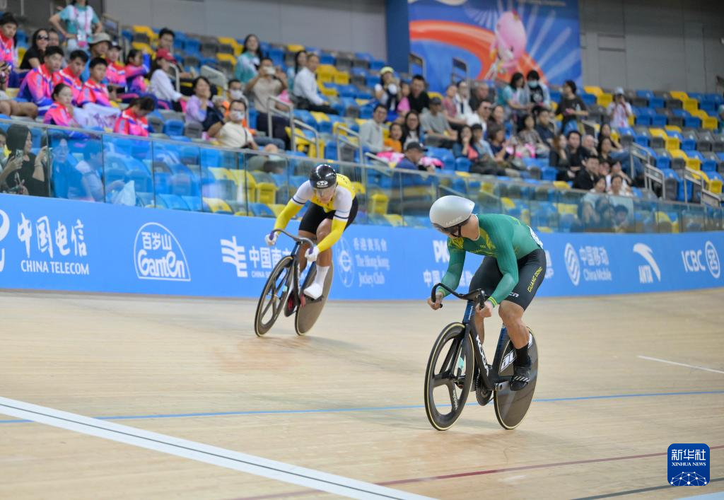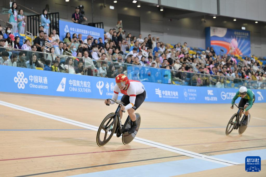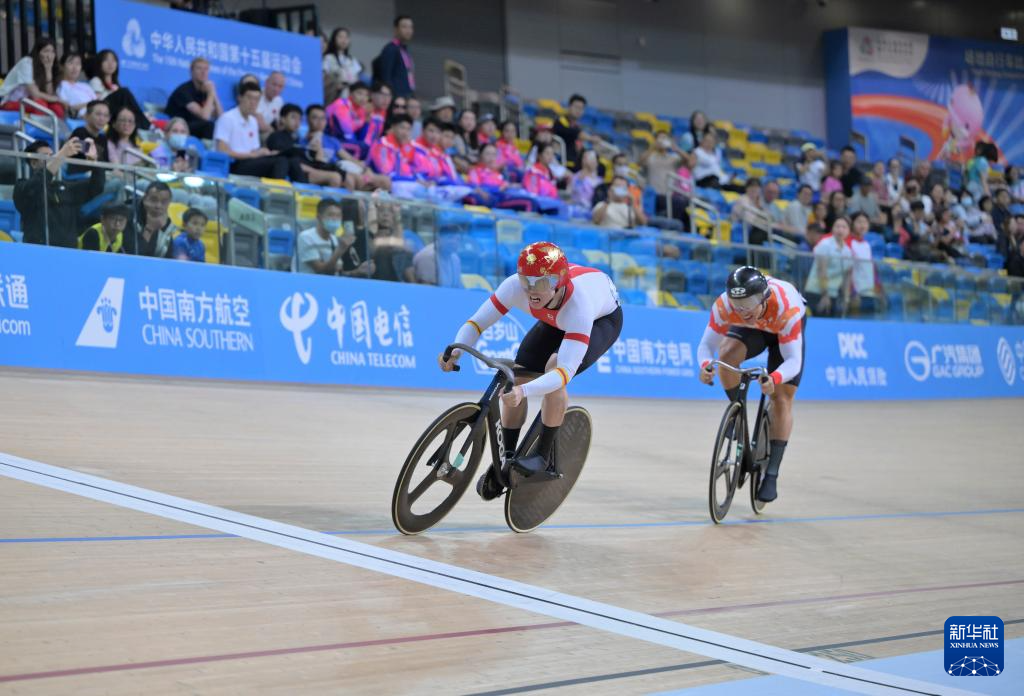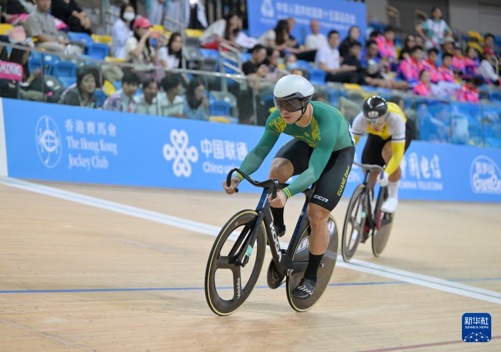 当日,第十五届全国运动会场地自行车男子争先赛在香港举行。