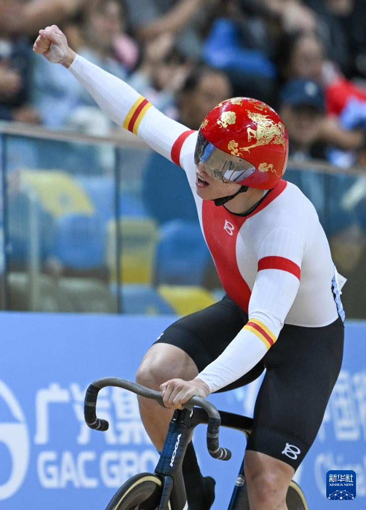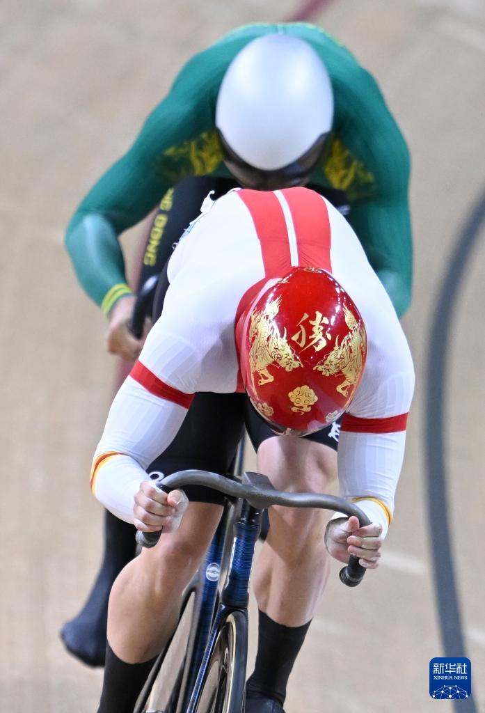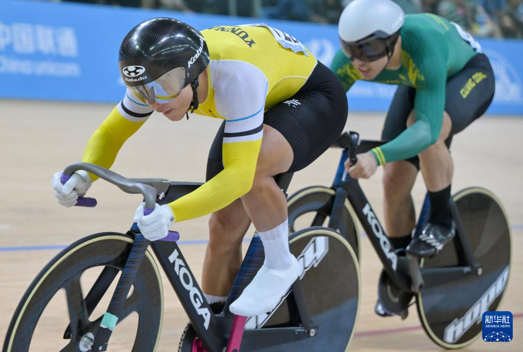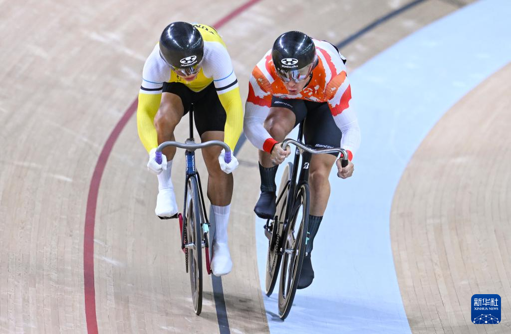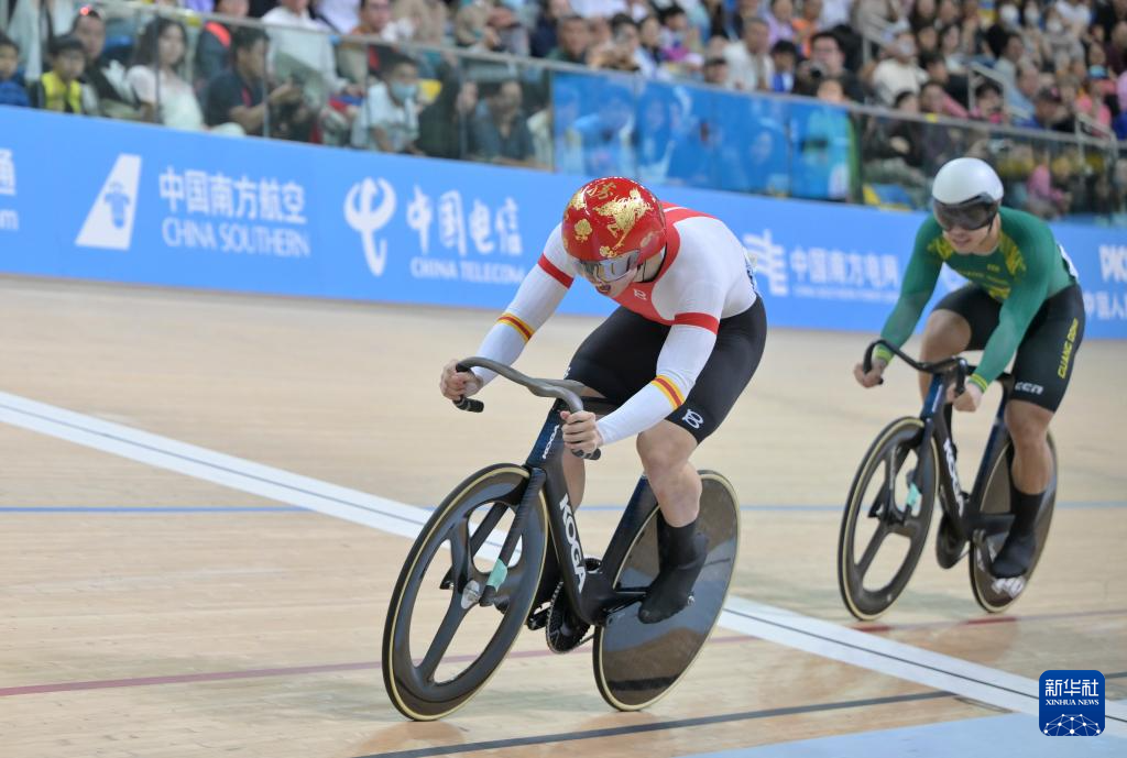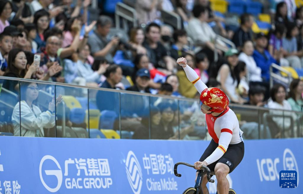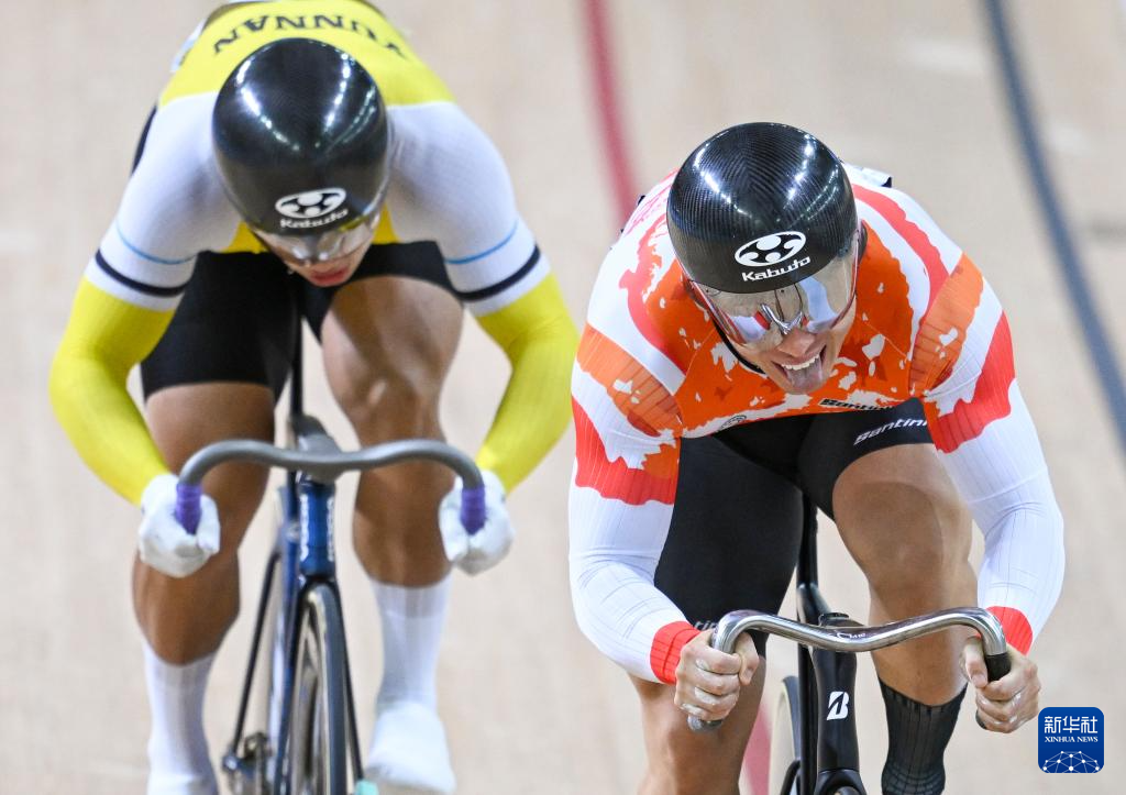 当日,第十五届全国运动会场地自行车男子争先赛在香港举行。