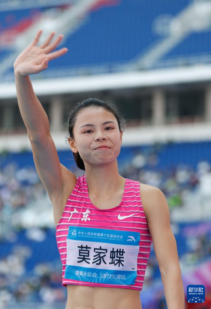 11月16日,广东队选手莫家蝶在赛前向观众挥手致意。