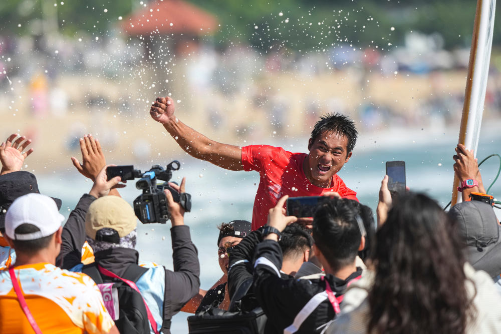 “第一次参加全运会就能获得冠军,很开心。”吴世栋说,“今天我发挥挺好的,做好了自己,而且今天天气也帮助了我的发挥,浪好浪大。”