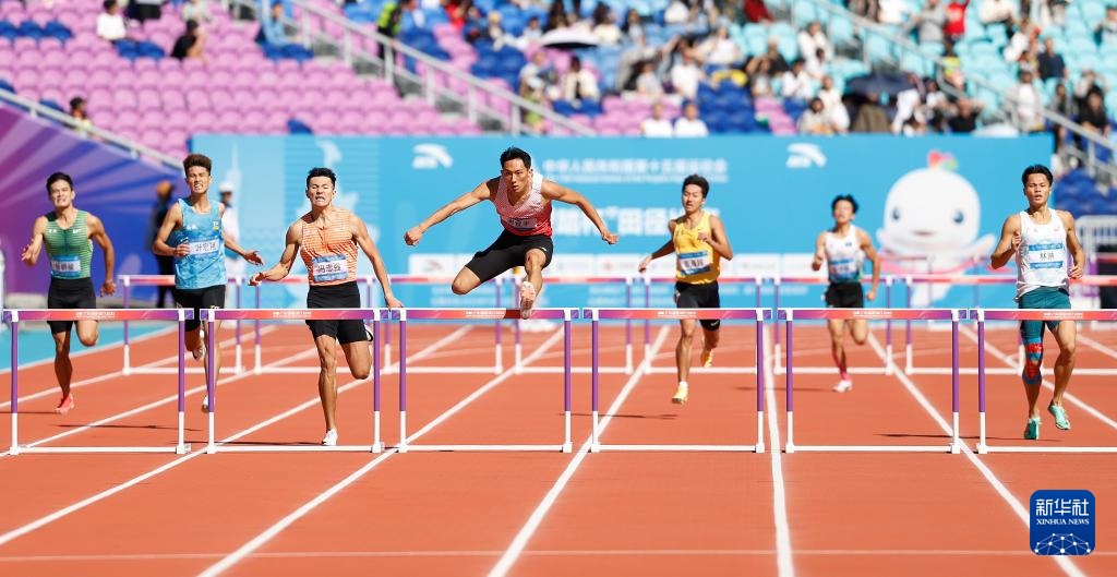 当日,第十五届全国运动会田径男子400米栏预赛在广州举行。
