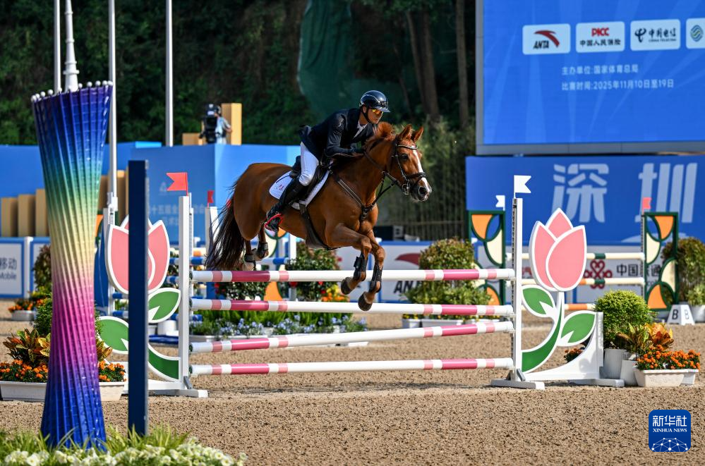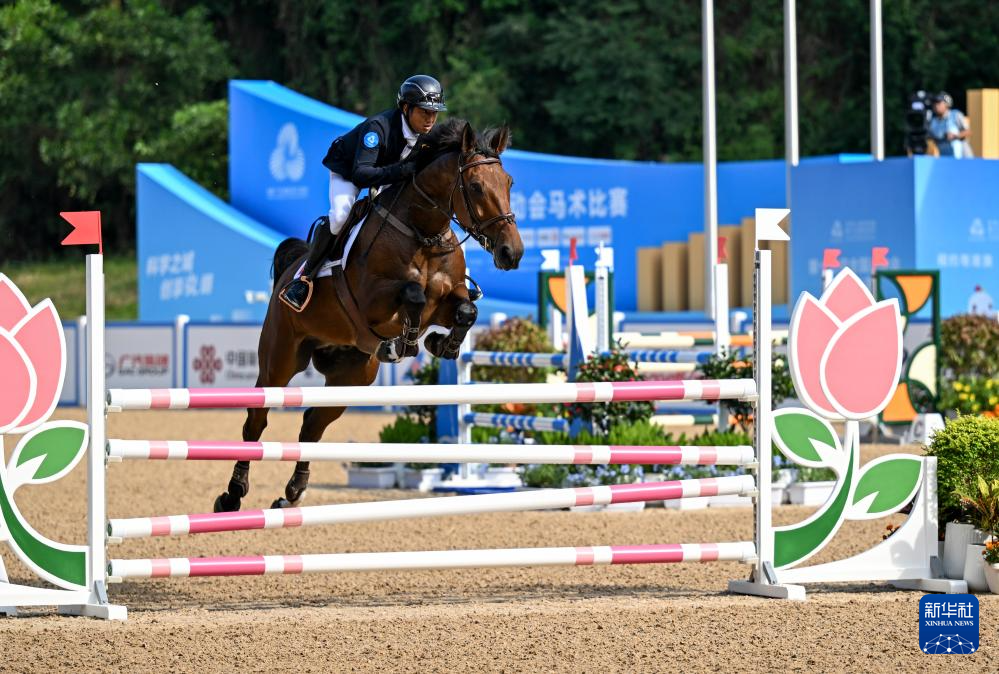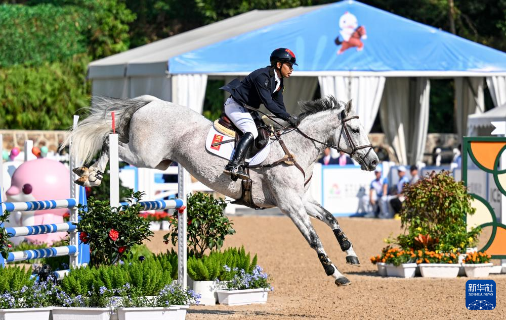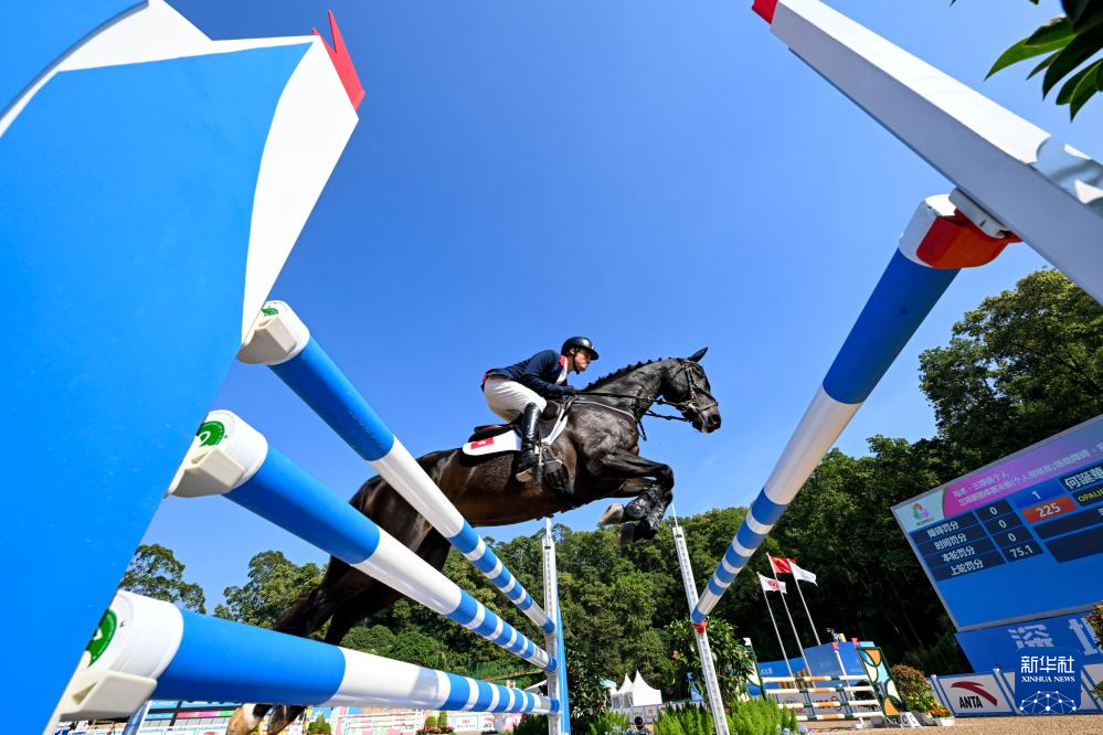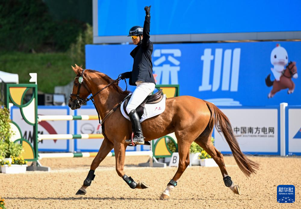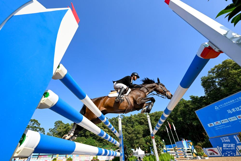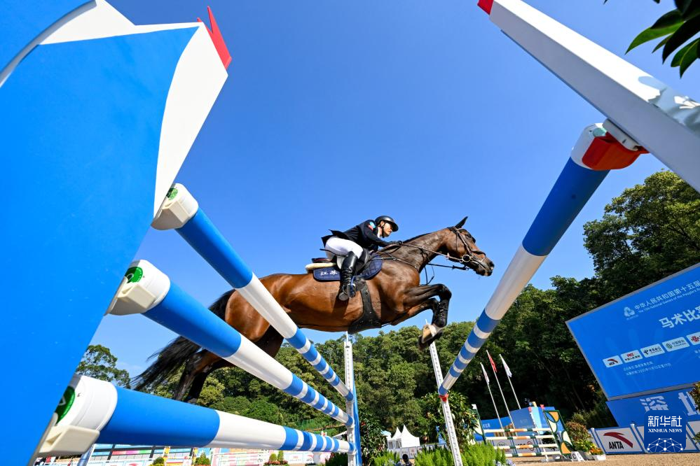 当日,第十五届全国运动会马术三项赛团体场地障碍赛决赛在广东深圳举行。