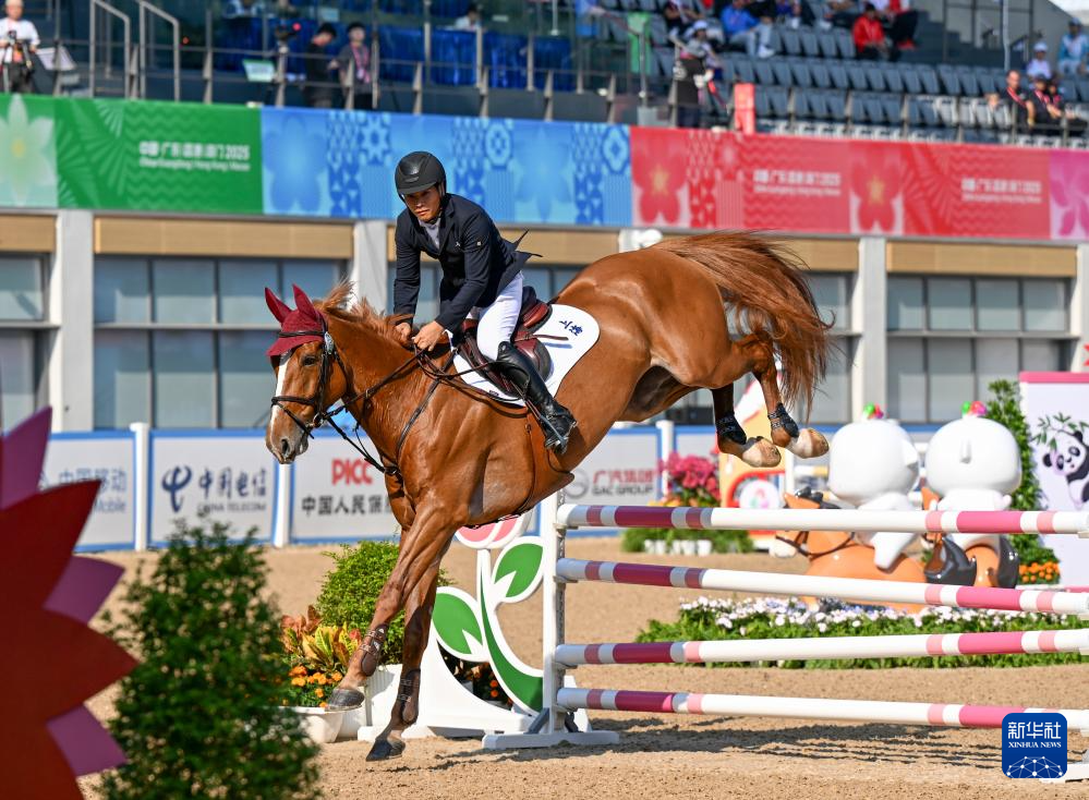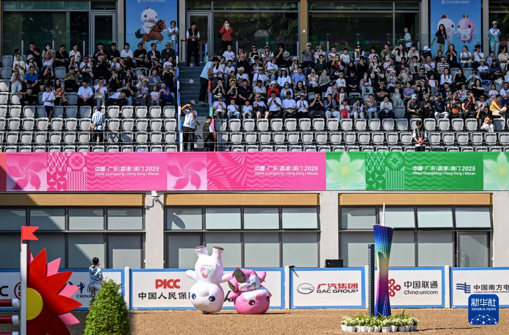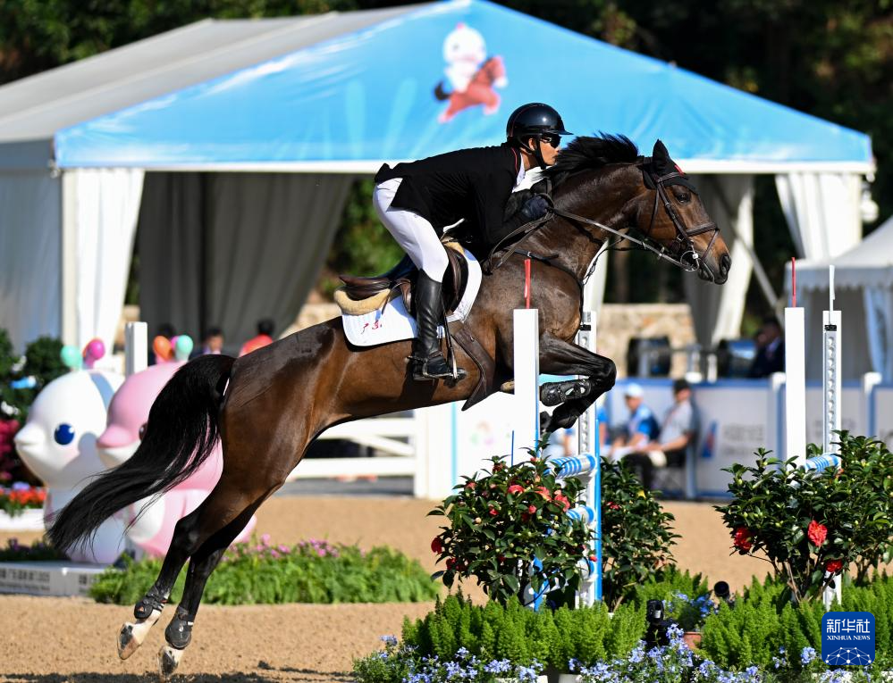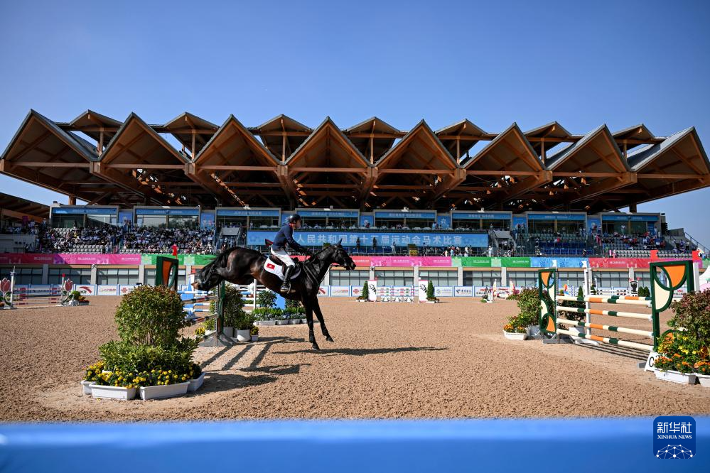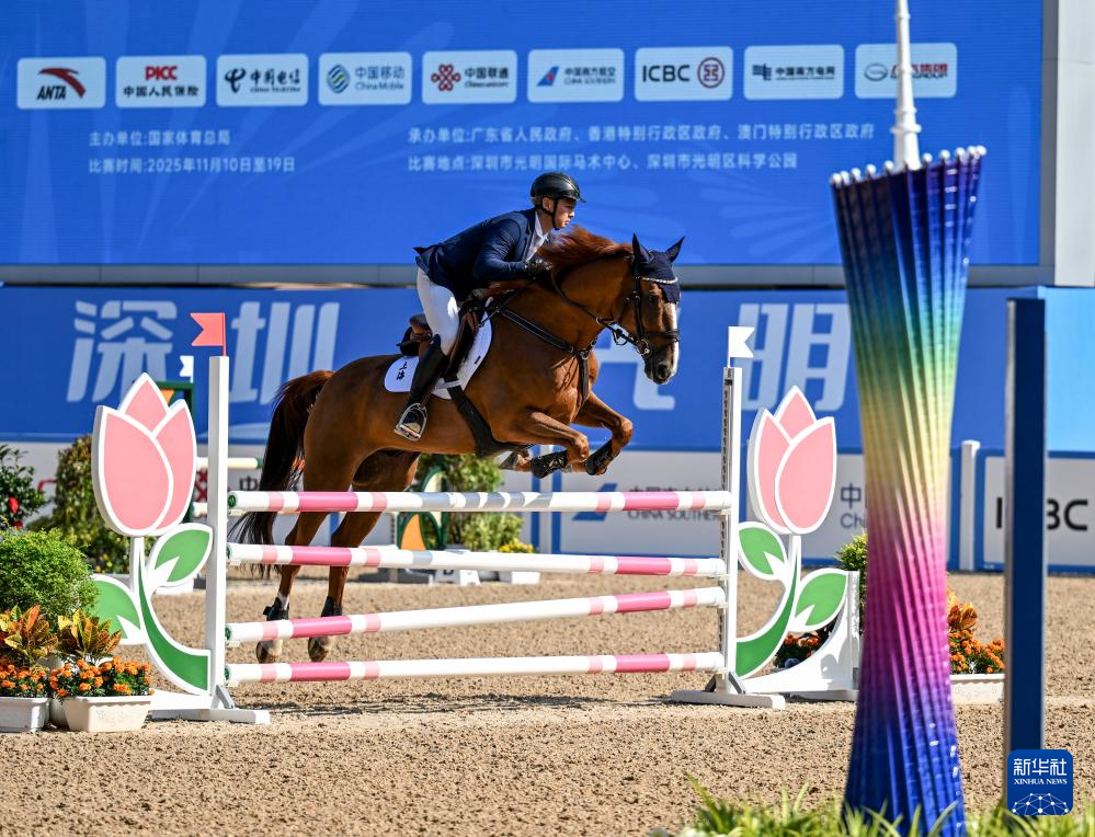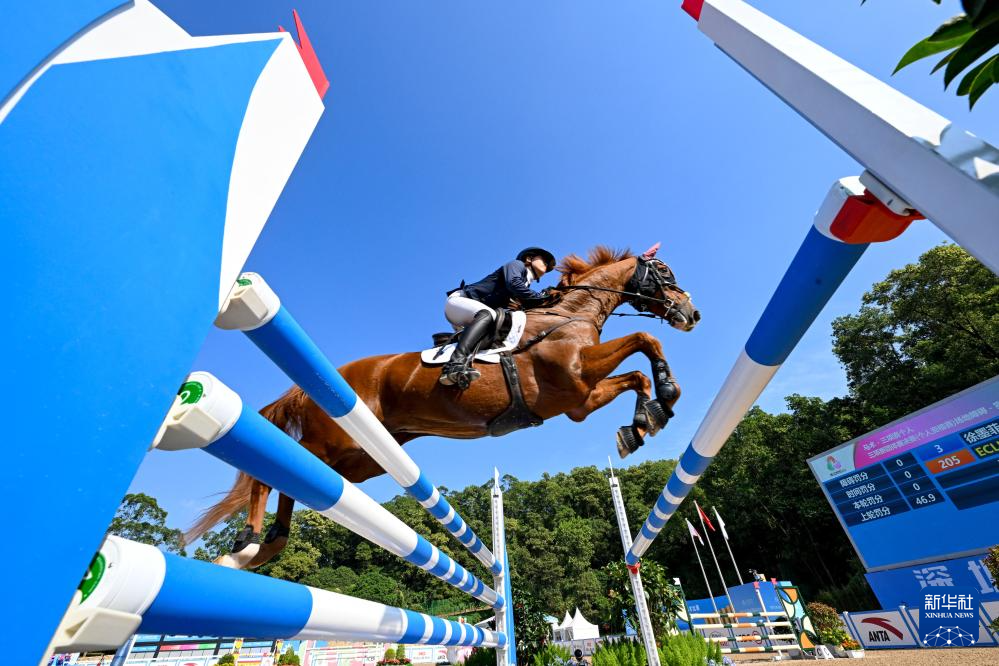 当日,第十五届全国运动会马术三项赛团体场地障碍赛决赛在广东深圳举行。