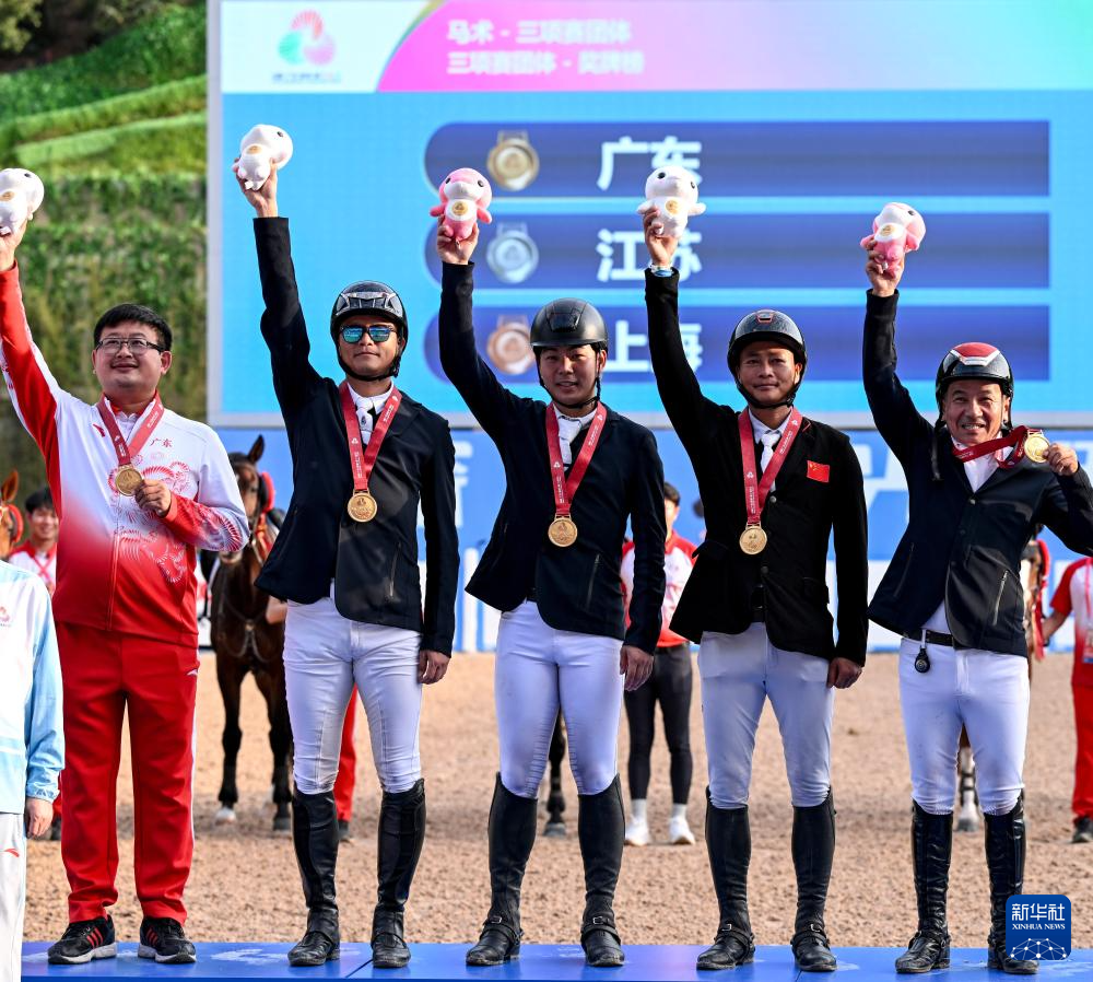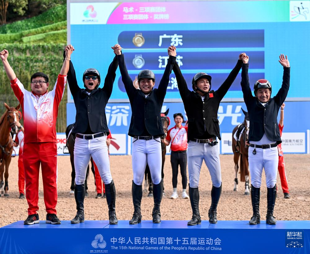 当日,在广东深圳举行的第十五届全国运动会马术三项赛团体赛场地障碍赛决赛中,广东队获得三项赛团体冠军,江苏队获得亚军,上海队获得季军。