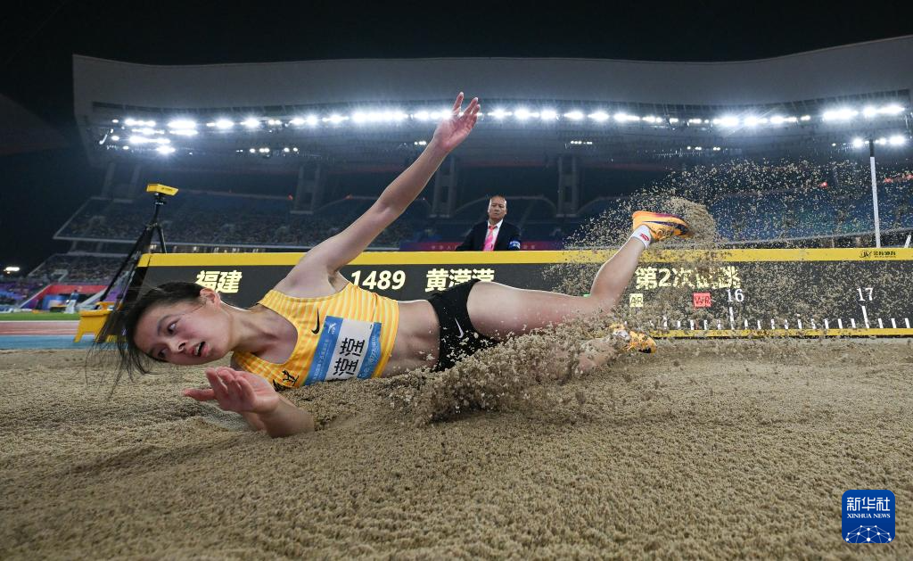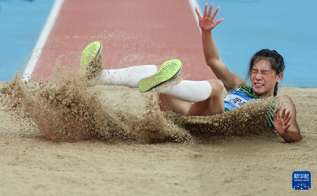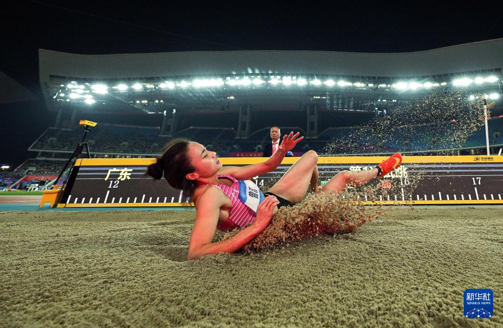 当日,第十五届全国运动会田径项目女子三级跳远决赛在广州举行。
