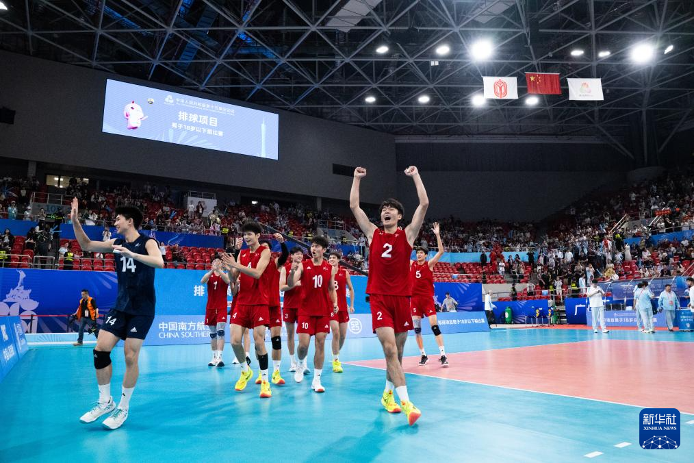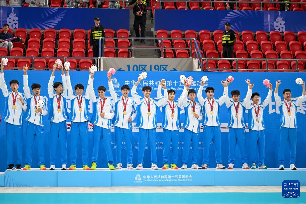 当日,在广州进行的第十五届全国运动会排球男子18岁以下组冠亚军决赛中,浙江队3比0战胜江苏队,获得冠军。